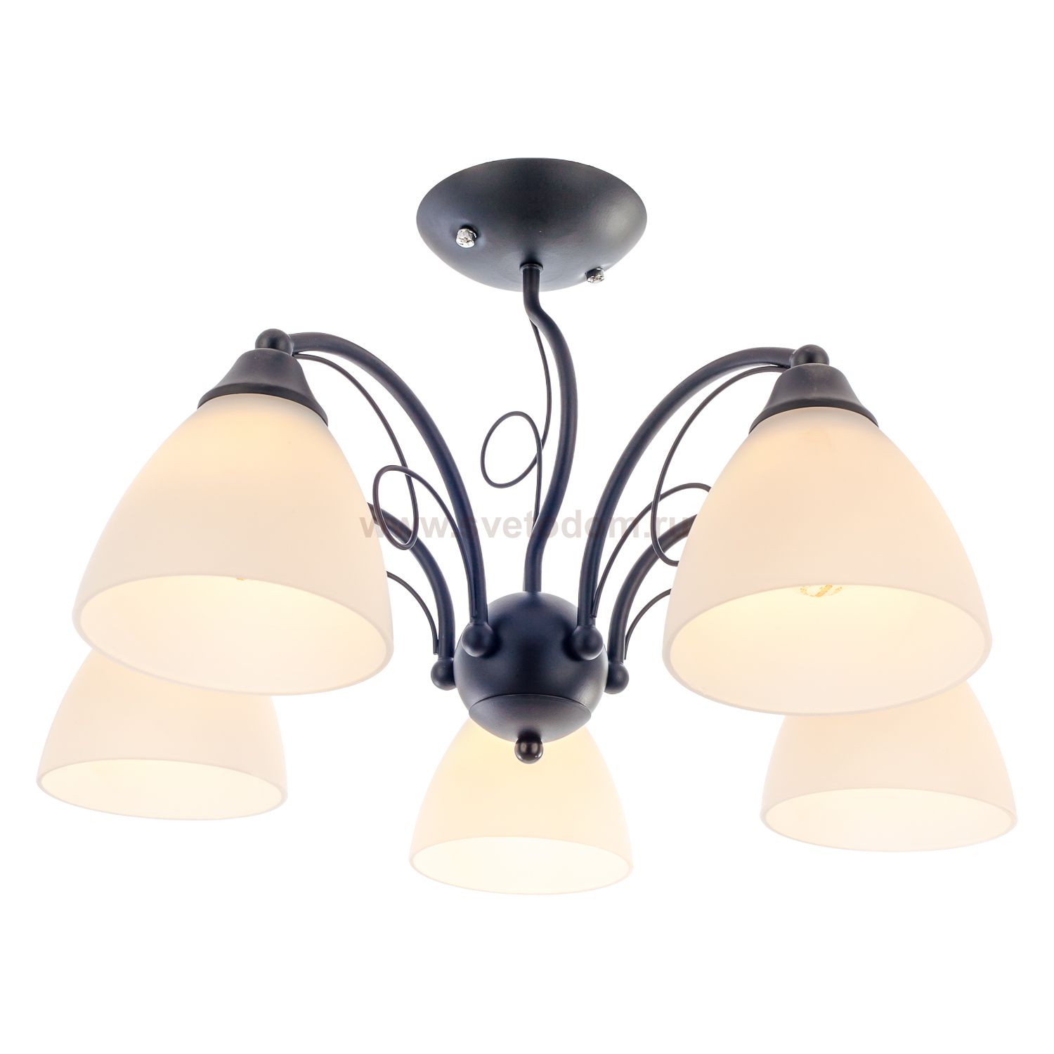 Люстра классическая 50567/5BK WT от бренда ЭкономСвет. Каркас выполнен из материала металл, цвет черный. Плафоны (светорассеиватели) выполнены из материала стекло, цвет белый. Цоколь E27 рассчитан на лампы максимальной мощности до 60 Вт, а максимальная площадь освещения составит до 11 м?.