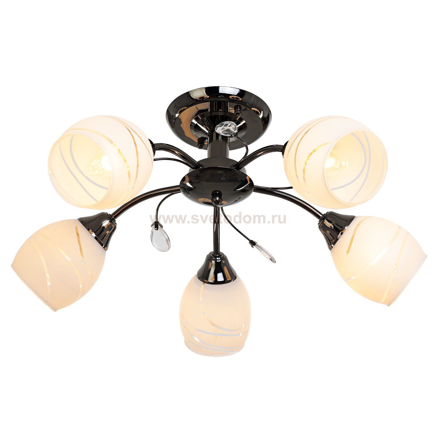 Потолочный светильник 50643/5ZZH WT от бренда ЭкономСвет. Каркас выполнен из материала металл, цвет антрацит. Плафоны (светорассеиватели) выполнены из материала стекло, цвет белый. Цоколь E27 рассчитан на лампы максимальной мощности до 60 Вт, а максимальная площадь освещения составит до 11 м?.