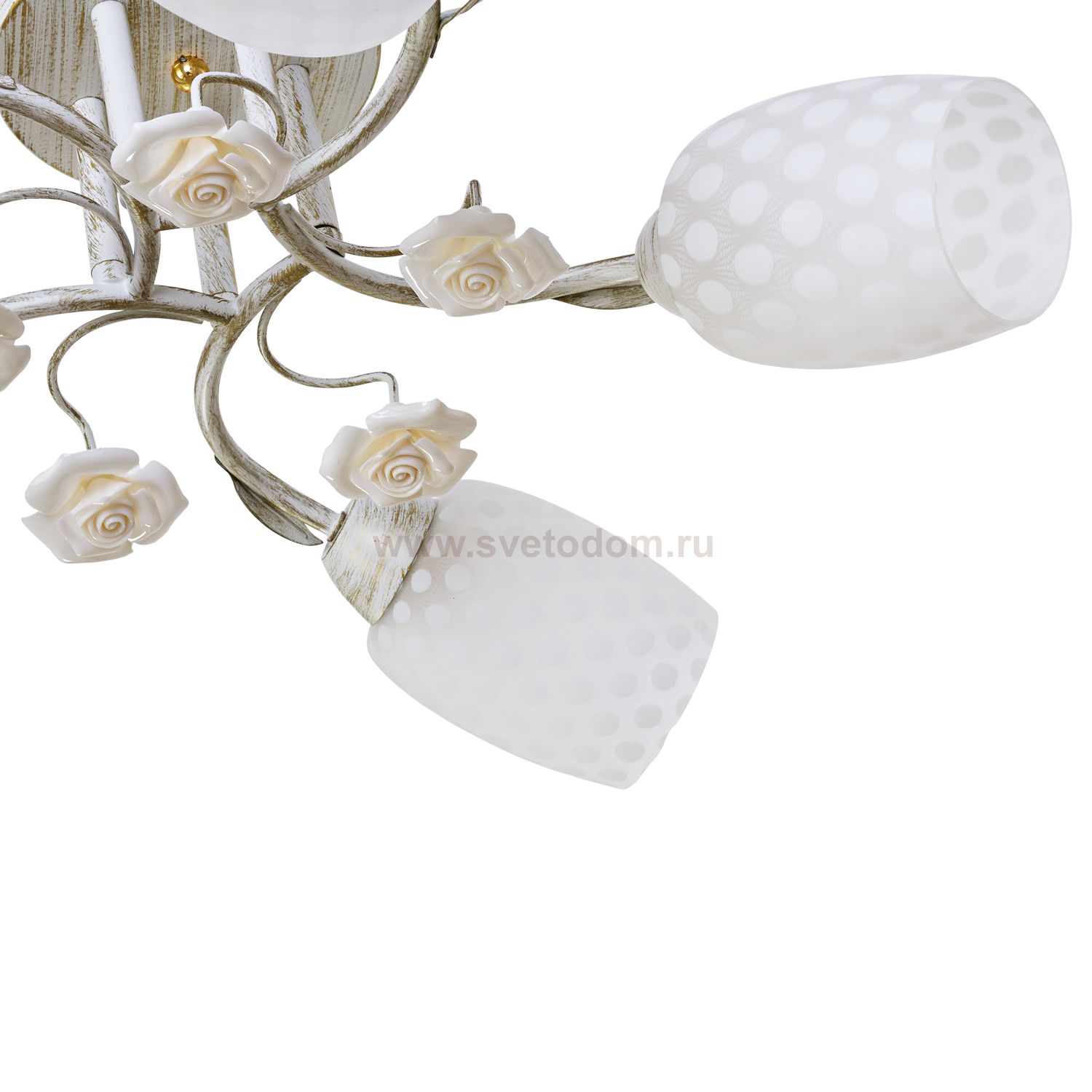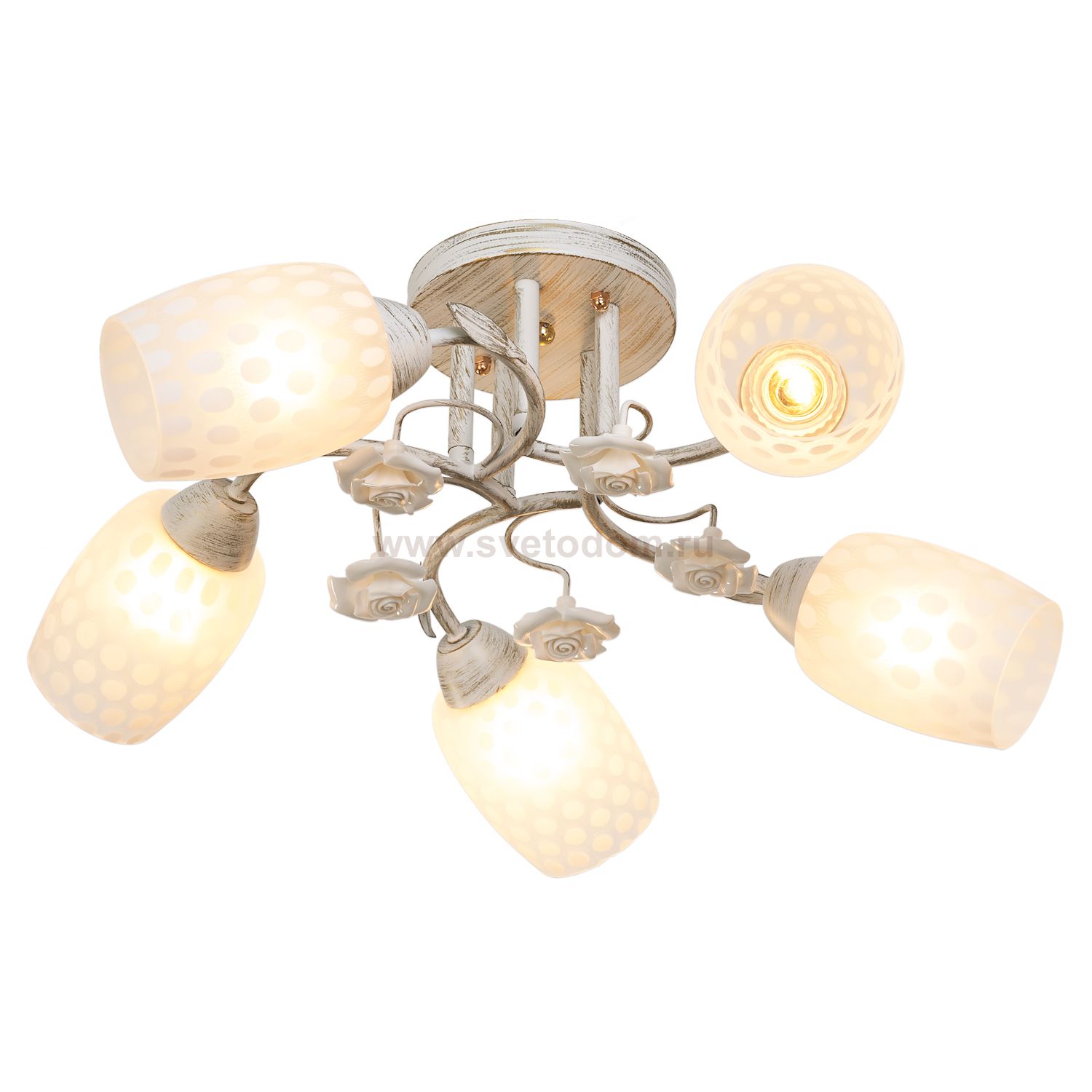 Потолочный светильник 51136/5WT WT от бренда ЭкономСвет. Каркас выполнен из материала металл, цвет античный белый. Плафоны (светорассеиватели) выполнены из материала стекло, цвет белый. Цоколь E27 рассчитан на лампы максимальной мощности до 40 Вт, а максимальная площадь освещения составит до 11 м?.