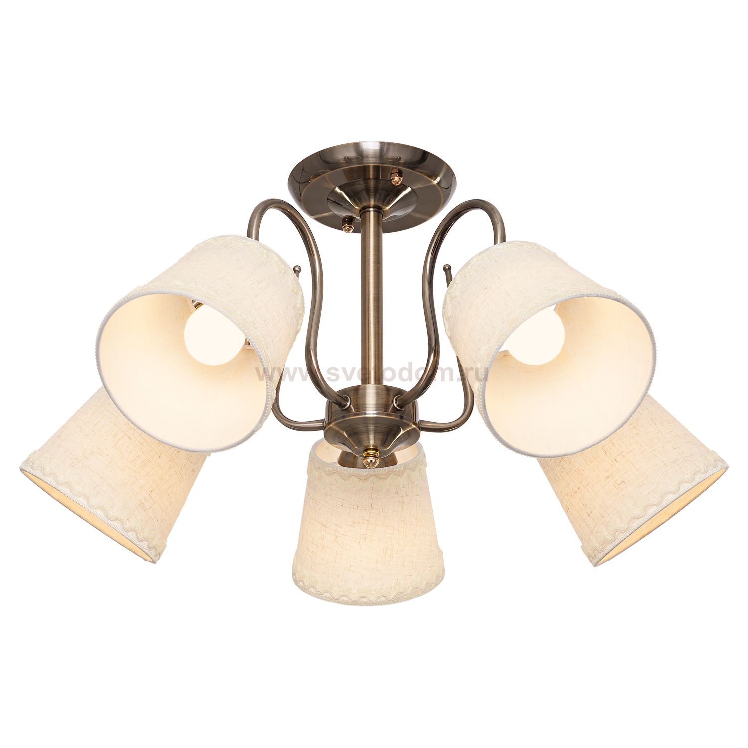Люстра классическая 51314/5AB BGE от бренда ЭкономСвет. Каркас выполнен из материала металл, цвет античная бронза. Плафоны (светорассеиватели) выполнены из материала текстиль, цвет бежевый. Цоколь E27 рассчитан на лампы максимальной мощности до 40 Вт, а максимальная площадь освещения составит до 11 м?.