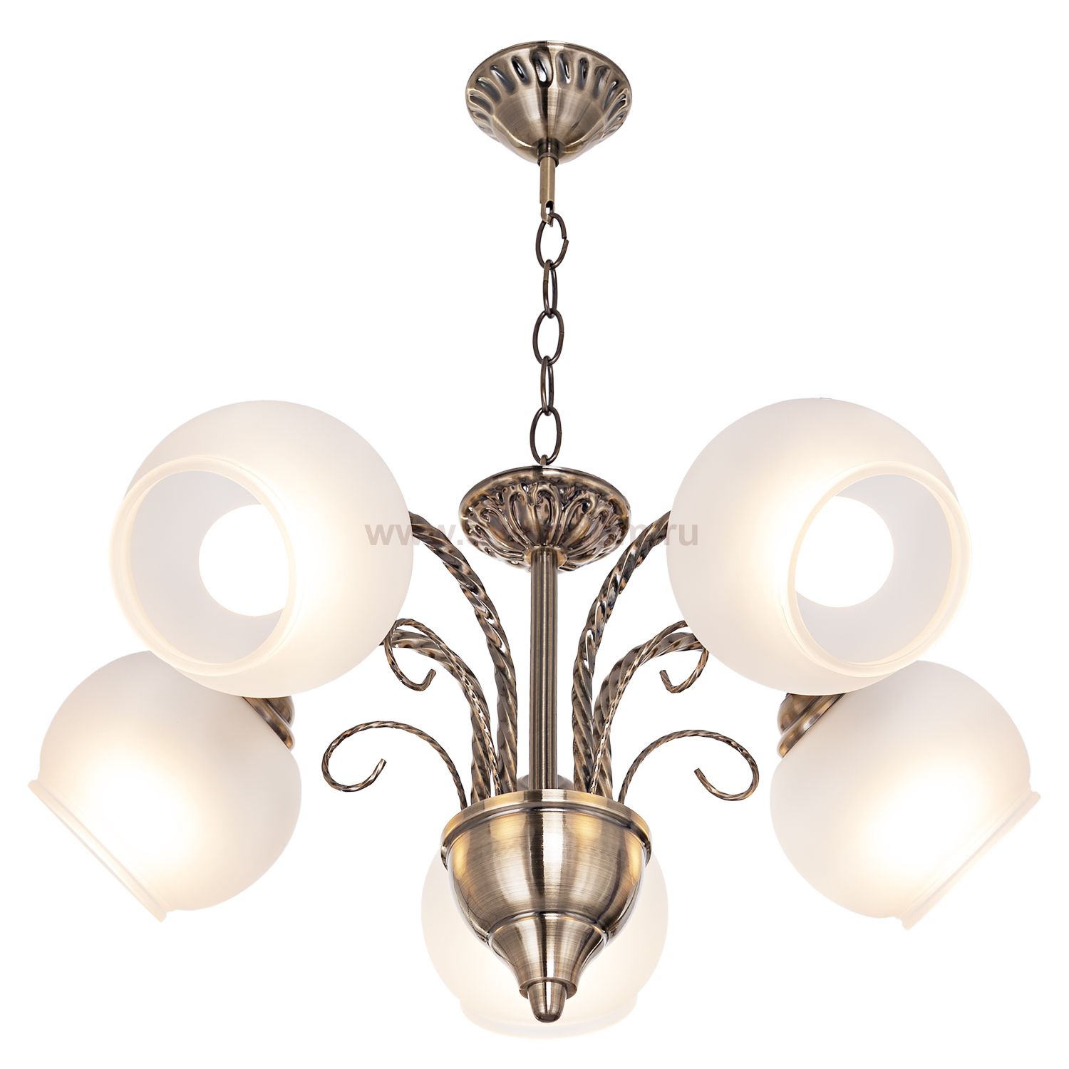 Люстра классическая 5349/5AB WT от бренда ЭкономСвет. Каркас выполнен из материала металл, цвет античная бронза. Плафоны (светорассеиватели) выполнены из материала стекло, цвет белый. Цоколь E27 рассчитан на лампы максимальной мощности до 40 Вт, а максимальная площадь освещения составит до 11 м?.