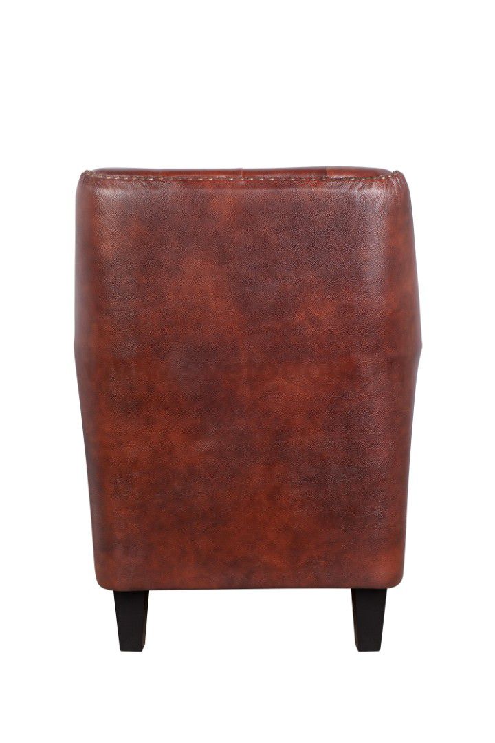 Кресло Noff из коричневой натуральной кожи, на низких деревянных ножках. Широкая спинка украшена объемной стяжкой, лицевая часть подлокотников декорирована блестящими заклепками. Модель практична и удобна в использовании обеспечивает комфортный отдых и расслабление. Устойчива износу и истиранию, при загрязнении легко очищается влажной салфеткой.