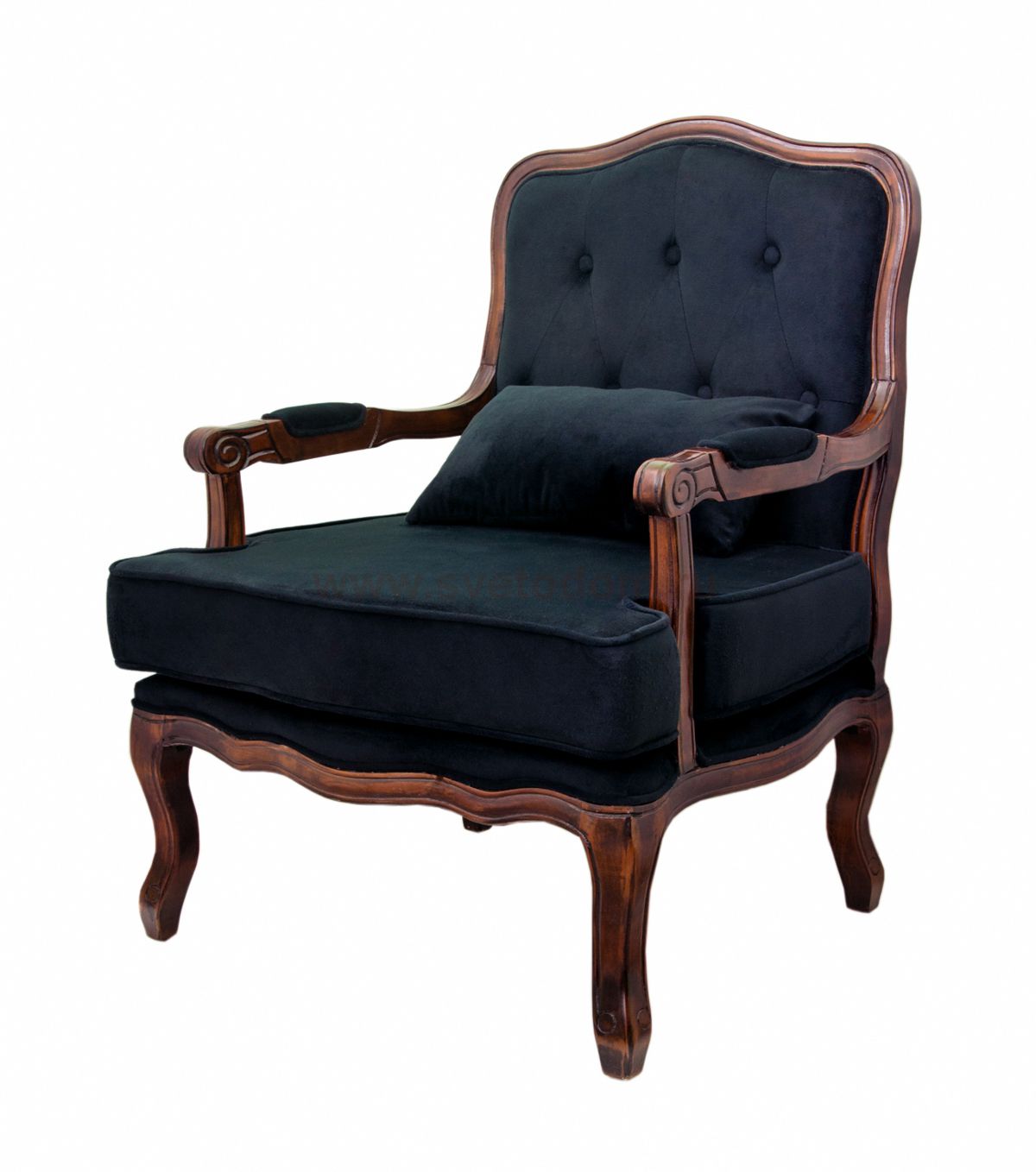 Кресло Nitro button black произведено на основе натуральных материалов, безопасных для здоровья и окружающей среды. Низкие фигурные ножки выполнены из массива дерева, в качестве обивки используется прочная ткань из велюра черного цвета. Широкая спинка с деревянной окантовкой по верху и пышное сиденье способствуют комфортному отдыху. Изящно изогнутые подлокотники обеспечивают удобное положение рук.