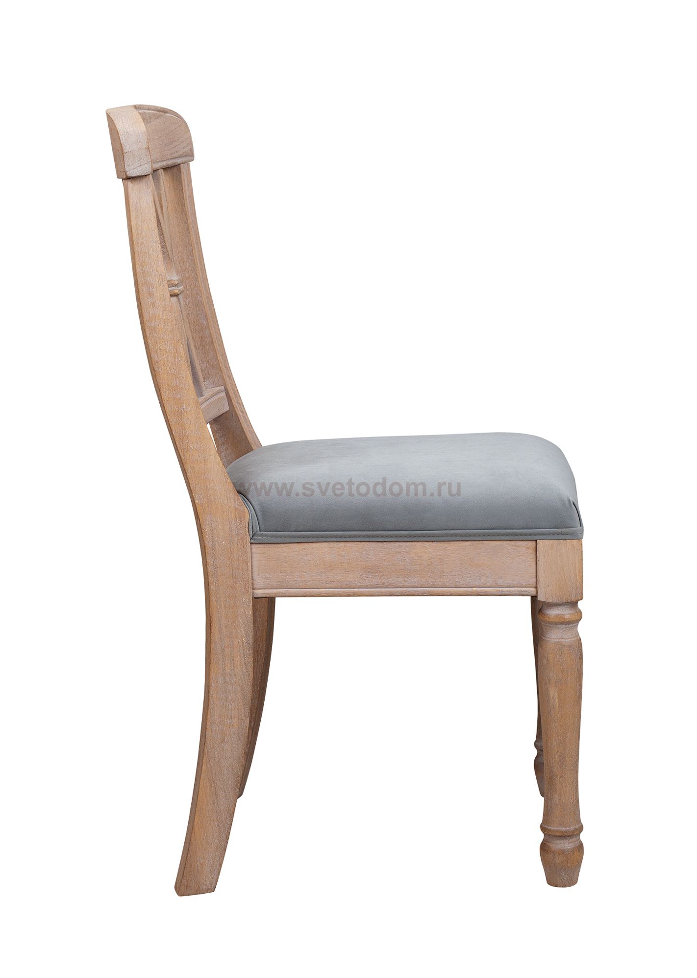 Стул Fabulous Gray, выполненный на основе каучукового дерева светло-коричневого цвета, с красивой текстурой. Спинка модели состоит из восьми планок различной длины и ширины: двух горизонтальных (широкой верхней и узкой нижней), двух вертикальных, волнообразно изогнутых и плавно переходящих в задние ножки, и четырех наклонных, которые попарно пересекаются, с образованием буквы «Х». Передние ножки имеют круглое сечение и декорированы изящной резьбой, располагаются под прямым углом. Обивка сиденья изготовлена из велюра.