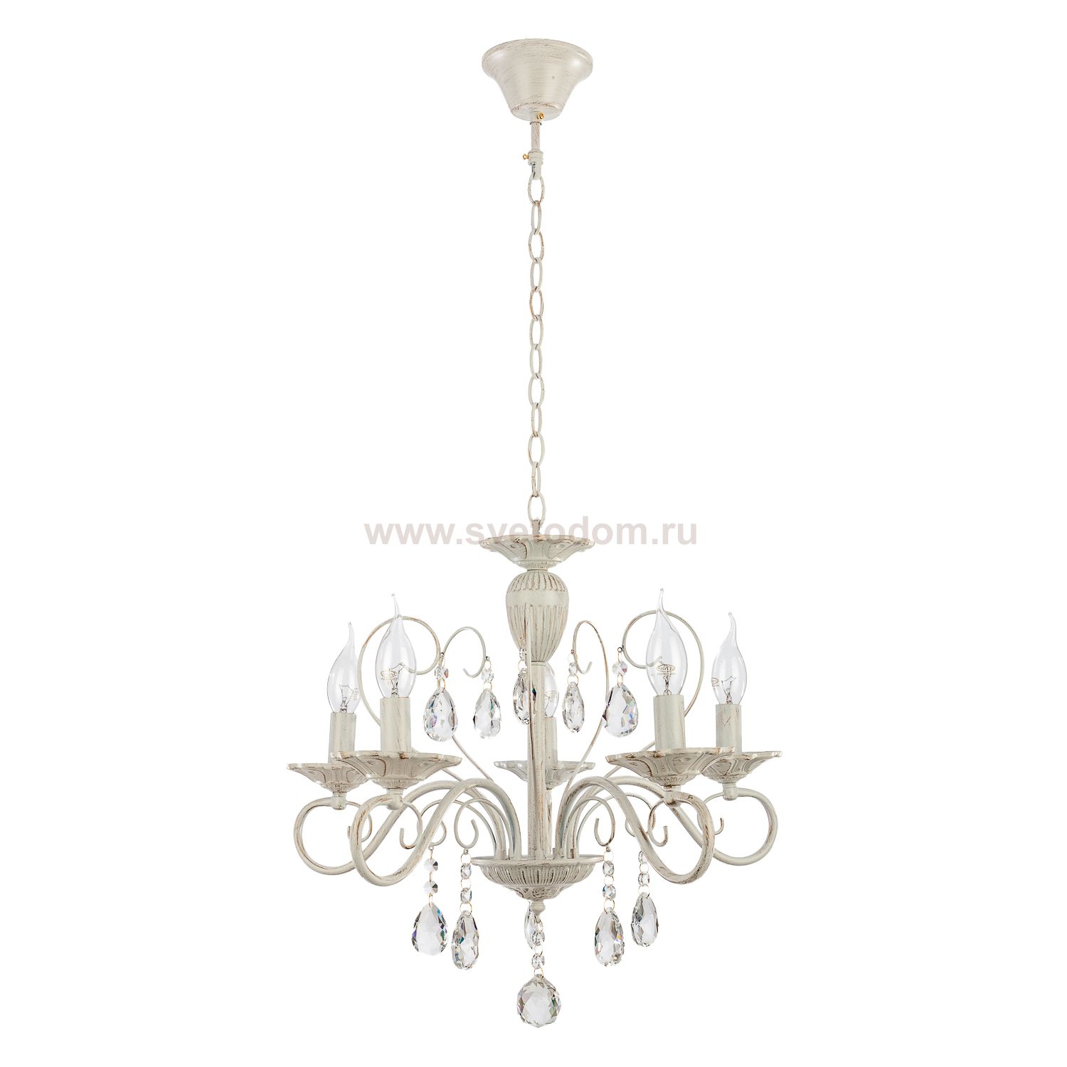 Люстра классическая с хрусталем 6108/5WT WT от бренда ЭкономСвет. Каркас выполнен из материала металл, цвет белый. Цоколь E14 рассчитан на лампы максимальной мощности до 60 Вт, а максимальная площадь освещения составит до 11 м?.