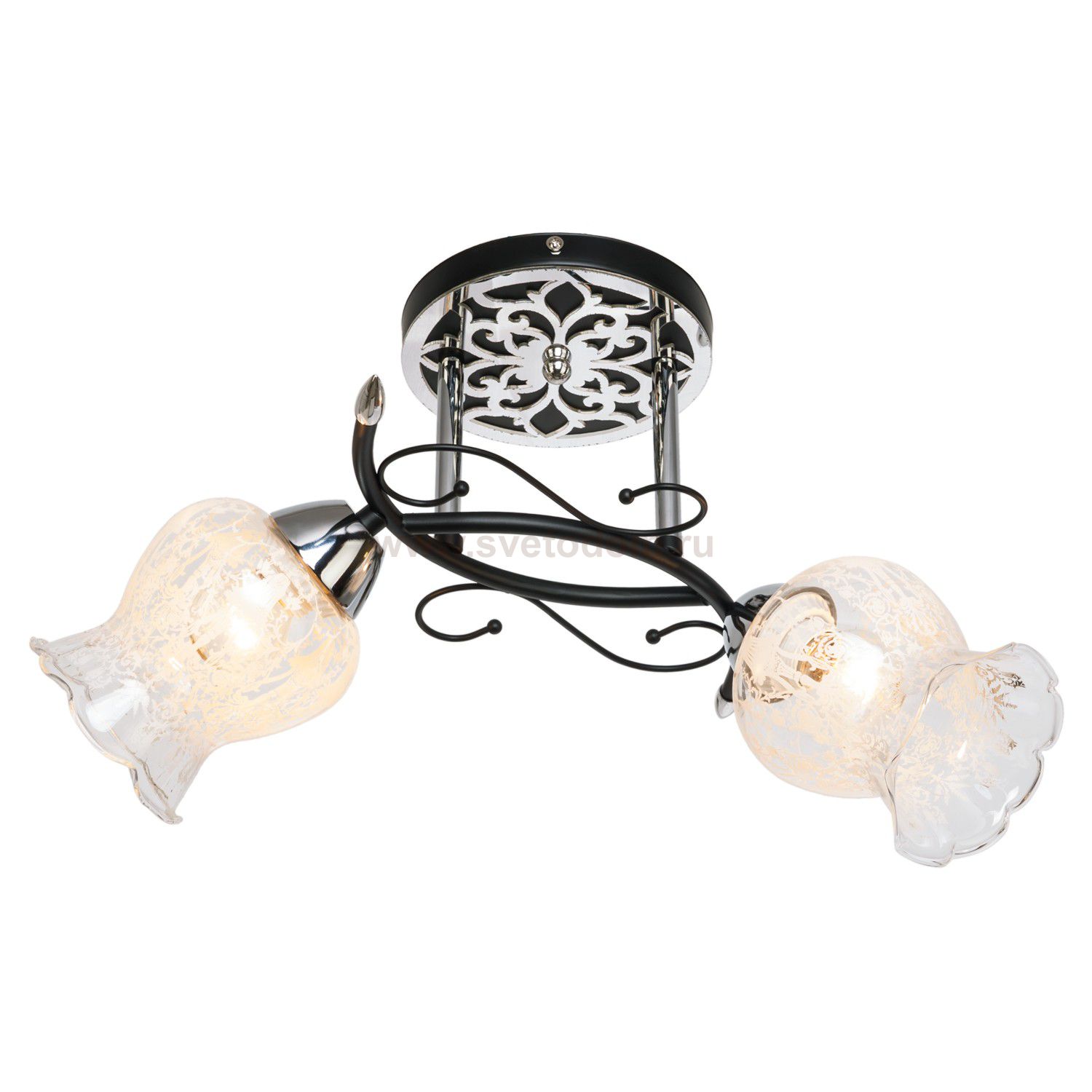 Потолочный светильник 6195GK/2 от бренда ЭкономСвет. Каркас выполнен из материала металл, цвет хром, черный. Плафоны (светорассеиватели) выполнены из материала стекло, цвет прозрачный. Цоколь E27 рассчитан на лампы максимальной мощности до 40 Вт, а максимальная площадь освещения составит до 4 м?.