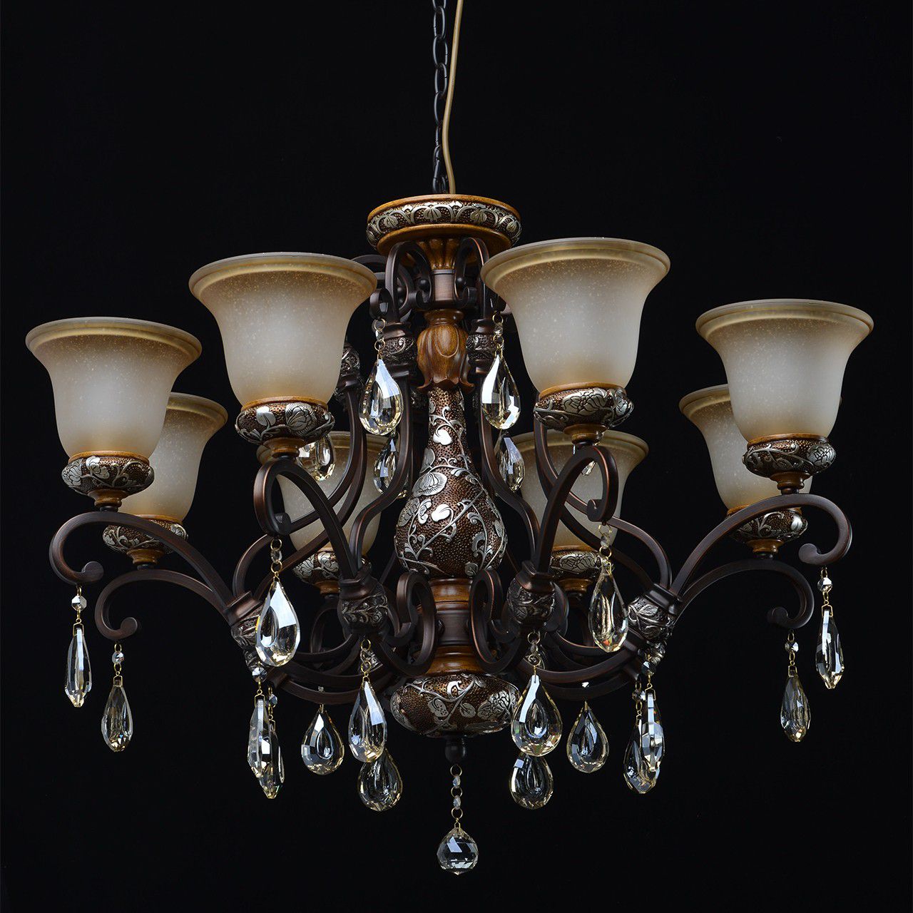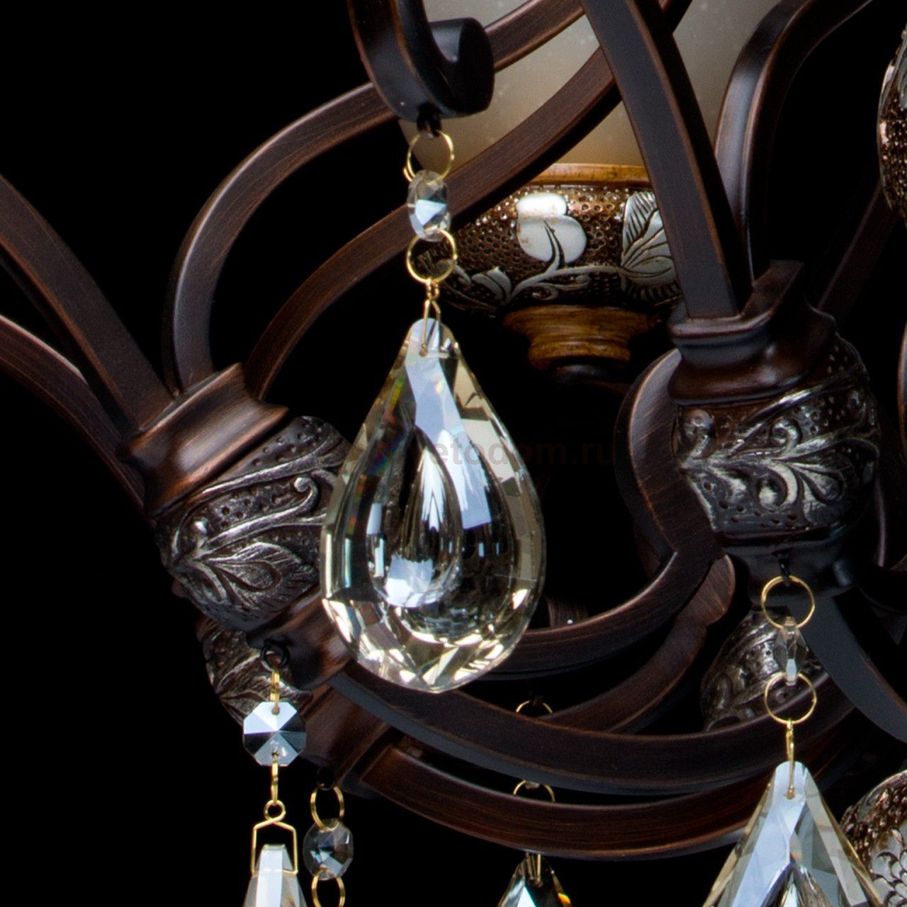 Кованое металлическое основание, декоративные элементы из искусственного каучука, плафоны из матового стекла, декоративные элементы из хрусталя цвета топаза Материал плафона