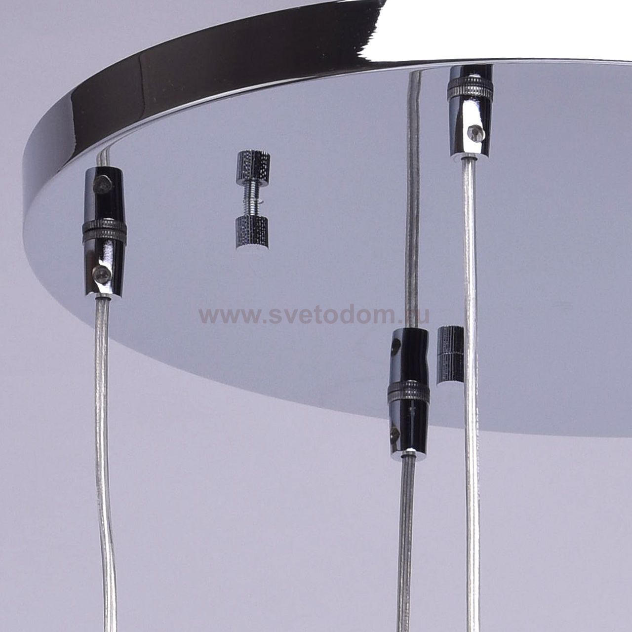 Арматура светильника выполнена из сплава металла и гальванизирована в цвет хрома. Плафоны из белого матового стекла, окрашенного в массе. Плафоны закрыты акриловым белым матовым рассеивателем. Благодаря креплению плафонов на шарнирах, светильник создает разнонаправленный свет. Комментарий