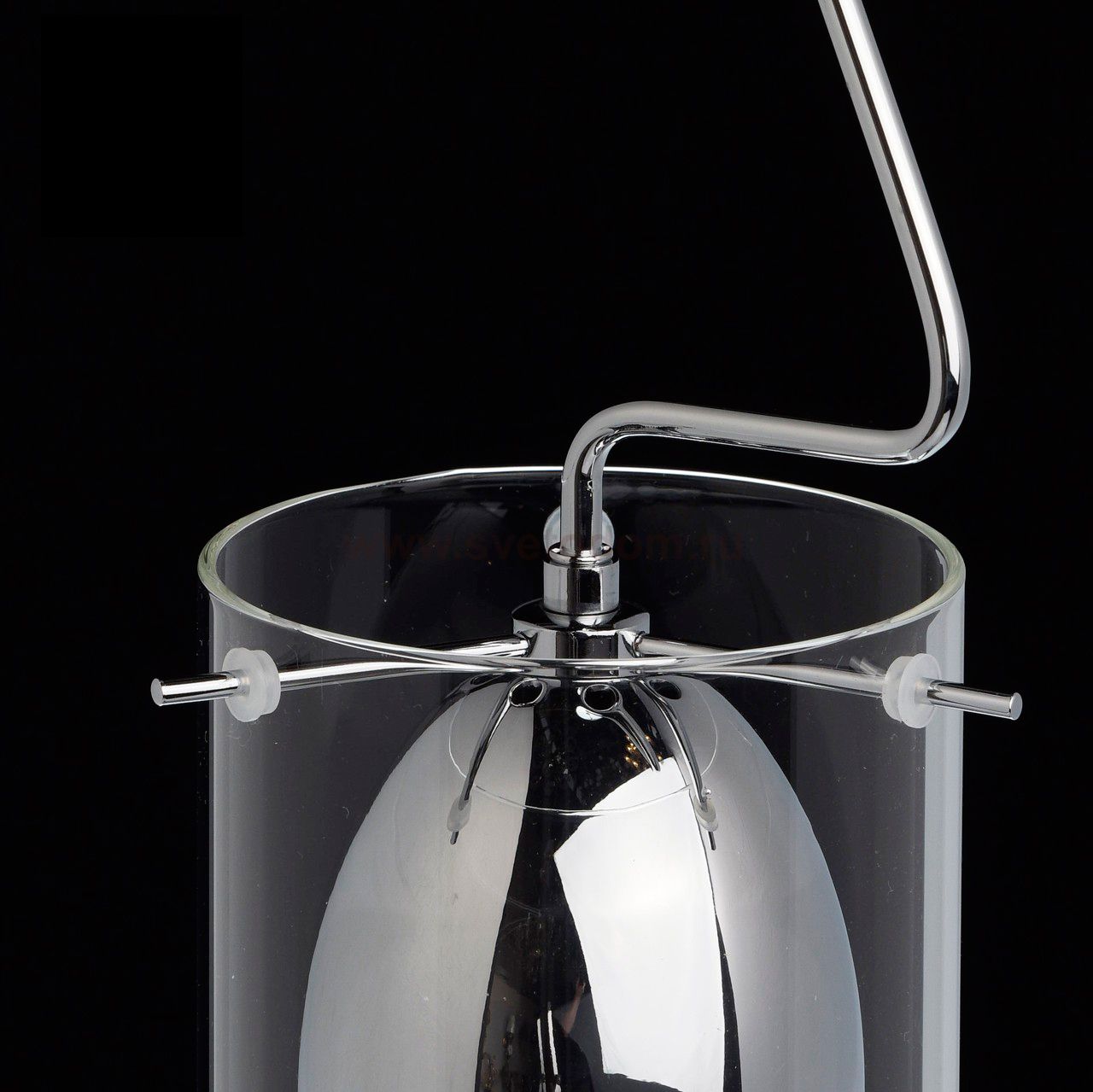 Двойной плафон: внутренний выполнен из сплава железа и гальванизирован в цвет хрома внешний – из прозрачного стекла. Место применения