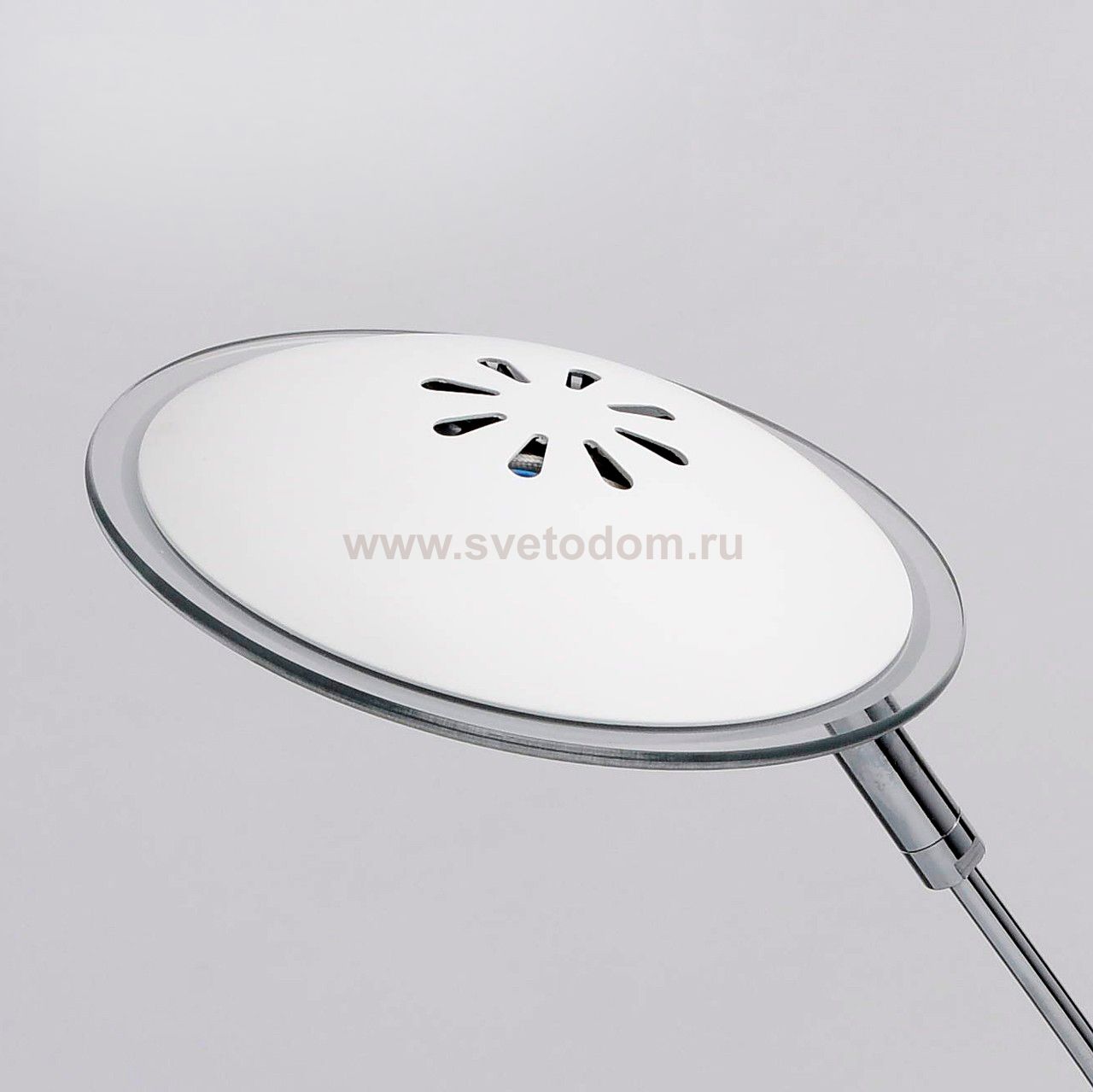 Арматура: сплав железа, окрашенный в белый цвет.Стержень: гальванизирован в цвет хрома. Плафон: декорирован прозрачным стеклом и снабжен поворотным шарниром. Светодиодный источник света закрыт белым матовым акрилом. Комментарий