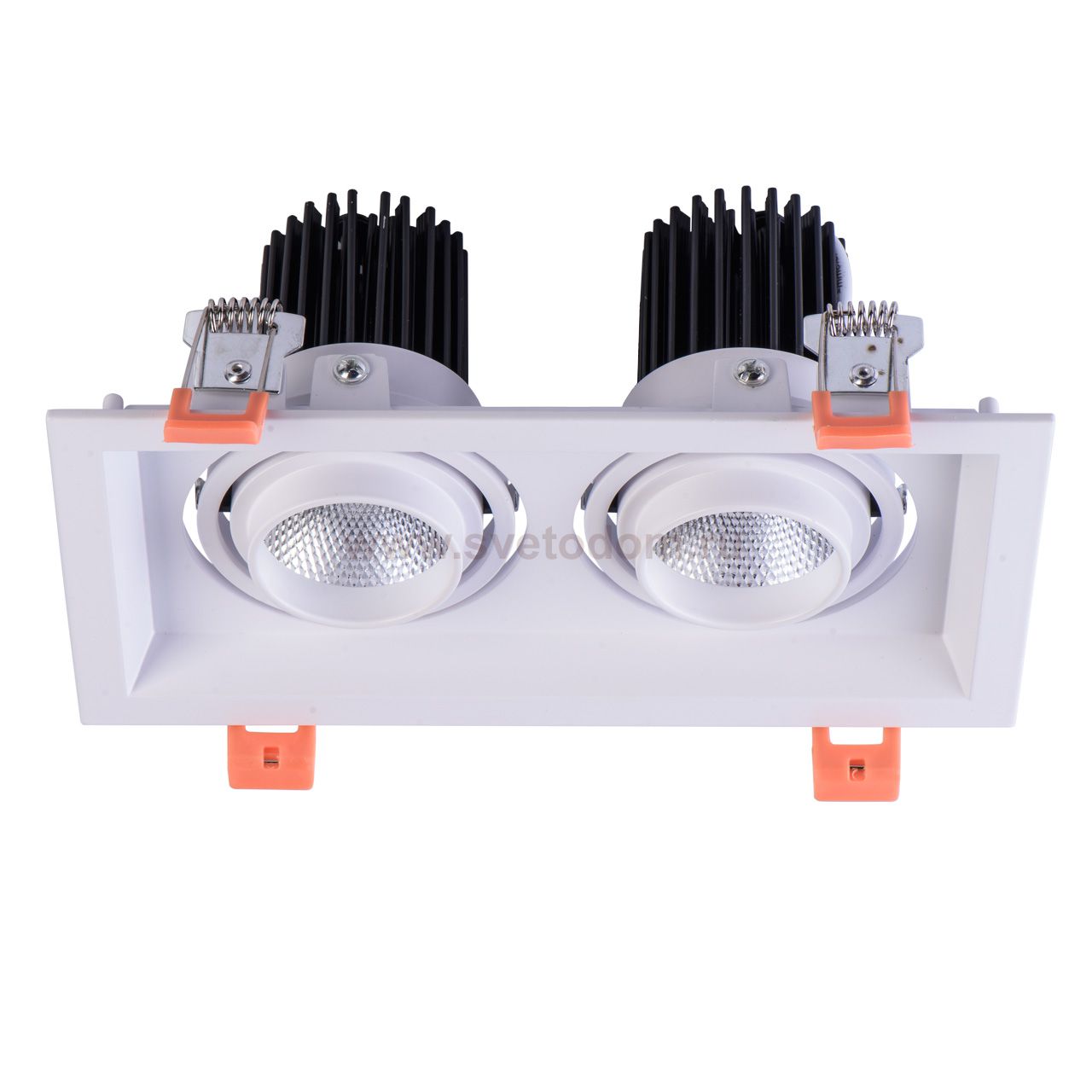 Корпус: сплав алюминия, окрашивание в белый цвет. Плафоны снабжены поворотным механизмом. Светодиодные источники света типа COB снабжены сферолитной оптической линзой. Комментарий