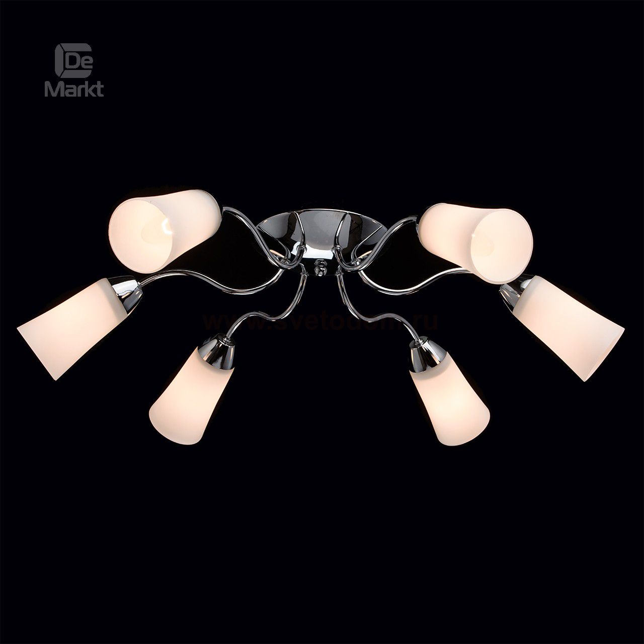 Описание модели 638010706: Удивительная потолочная люстра «Олимпия» создана специально для того, чтобы осветить даже самые отдаленные уголки комнаты. Хромированное металлическое основание гармонично дополнено белыми матовыми плафонами, направленными в разные стороны таким образом, чтобы освещение было максимально эффективно распределено. Стиль светильника оригинальный и вместе с тем лаконичный, без излишеств и дополнительных украшений. «Олимпия» идеально подойдет для просторных гостиных или спален в стилях модерн или контемпорари. Рекомендуемая площадь освещения – 18 кв.м.