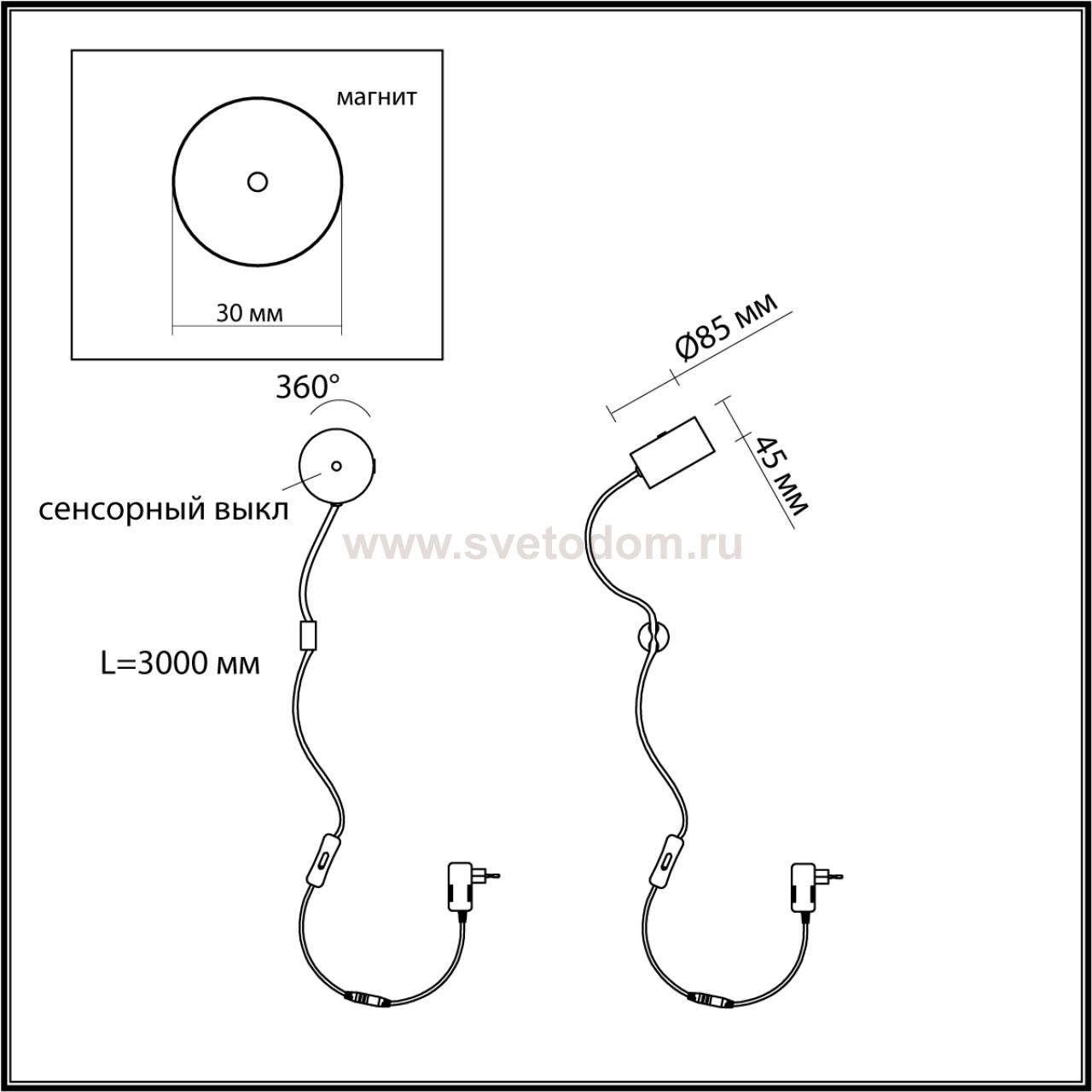 Настенный светильник крепится на магните и на креплении к стене, легко снимается и плавным нажатием сенсорного диммера сзади плафона можно выключать свет и плавно регулировать яркость.