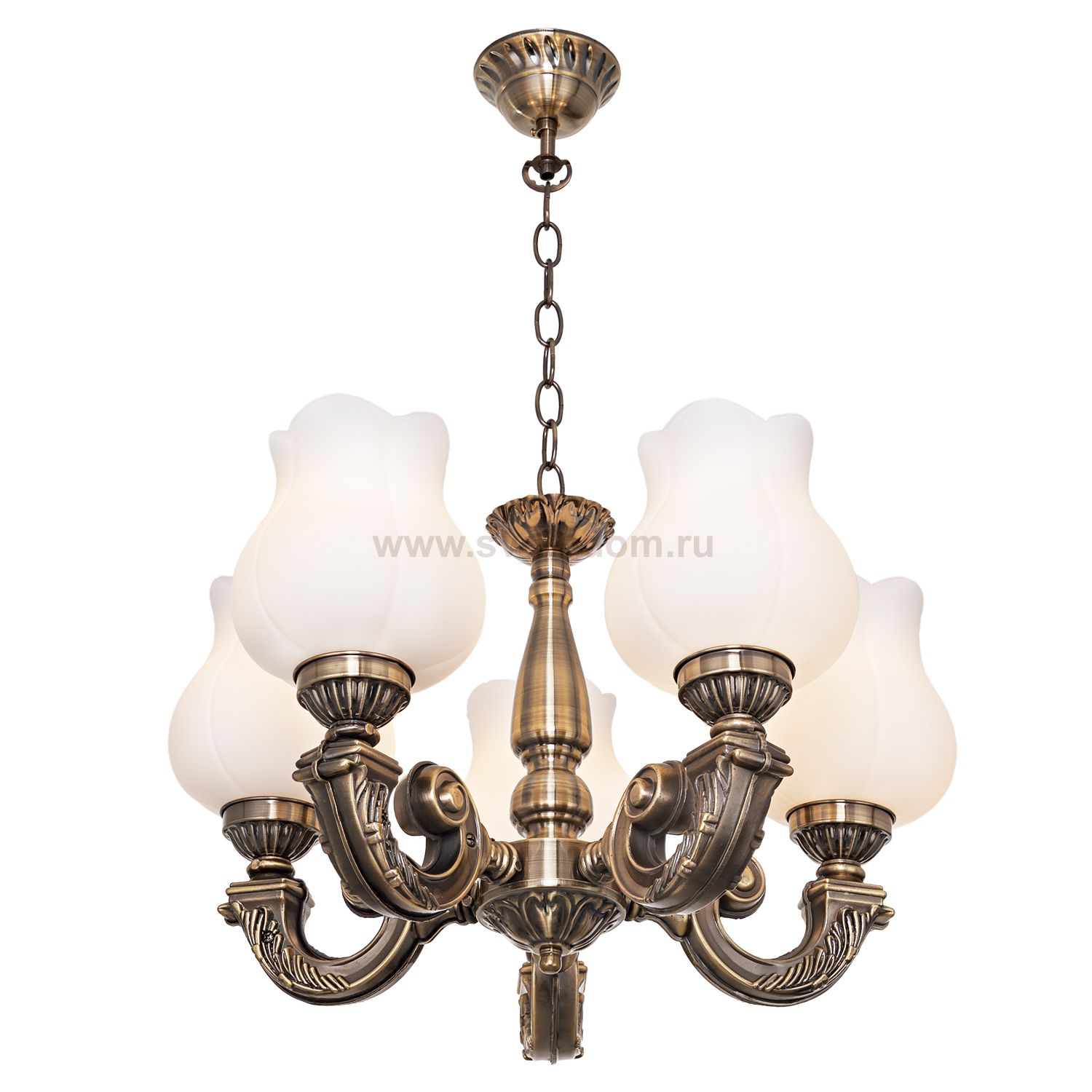 Люстра классическая 6708D/5AB WT от бренда ЭкономСвет. Каркас выполнен из материала металл, цвет античная бронза. Плафоны (светорассеиватели) выполнены из материала стекло, цвет белый. Цоколь E27 рассчитан на лампы максимальной мощности до 40 Вт, а максимальная площадь освещения составит до 11 м?.