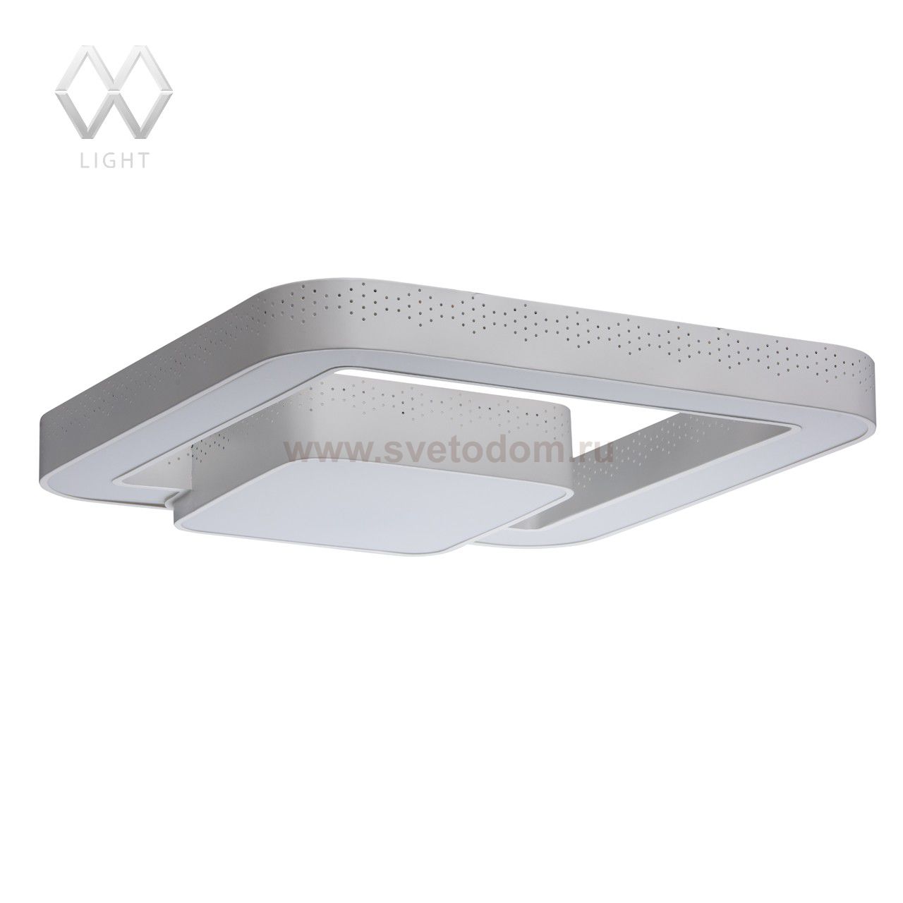Перфорированный корпус светильника выполнен из сплава железа и окрашен в цвет серебра. Светодиодный источник света закрыт белым глянцевым акрилом. Комментарий