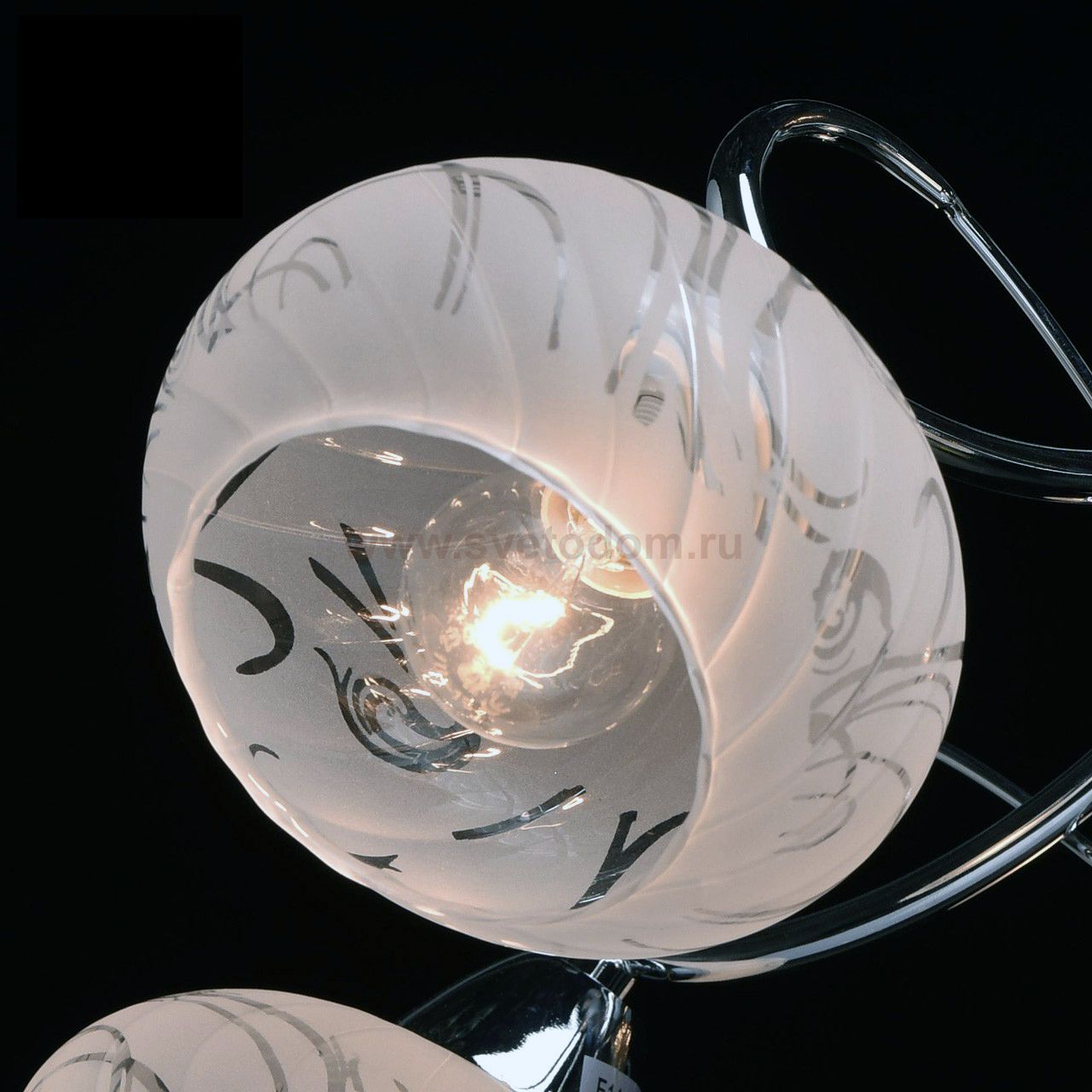 Металлическое основание цвета хрома, стеклянные плафоны Материал плафона
