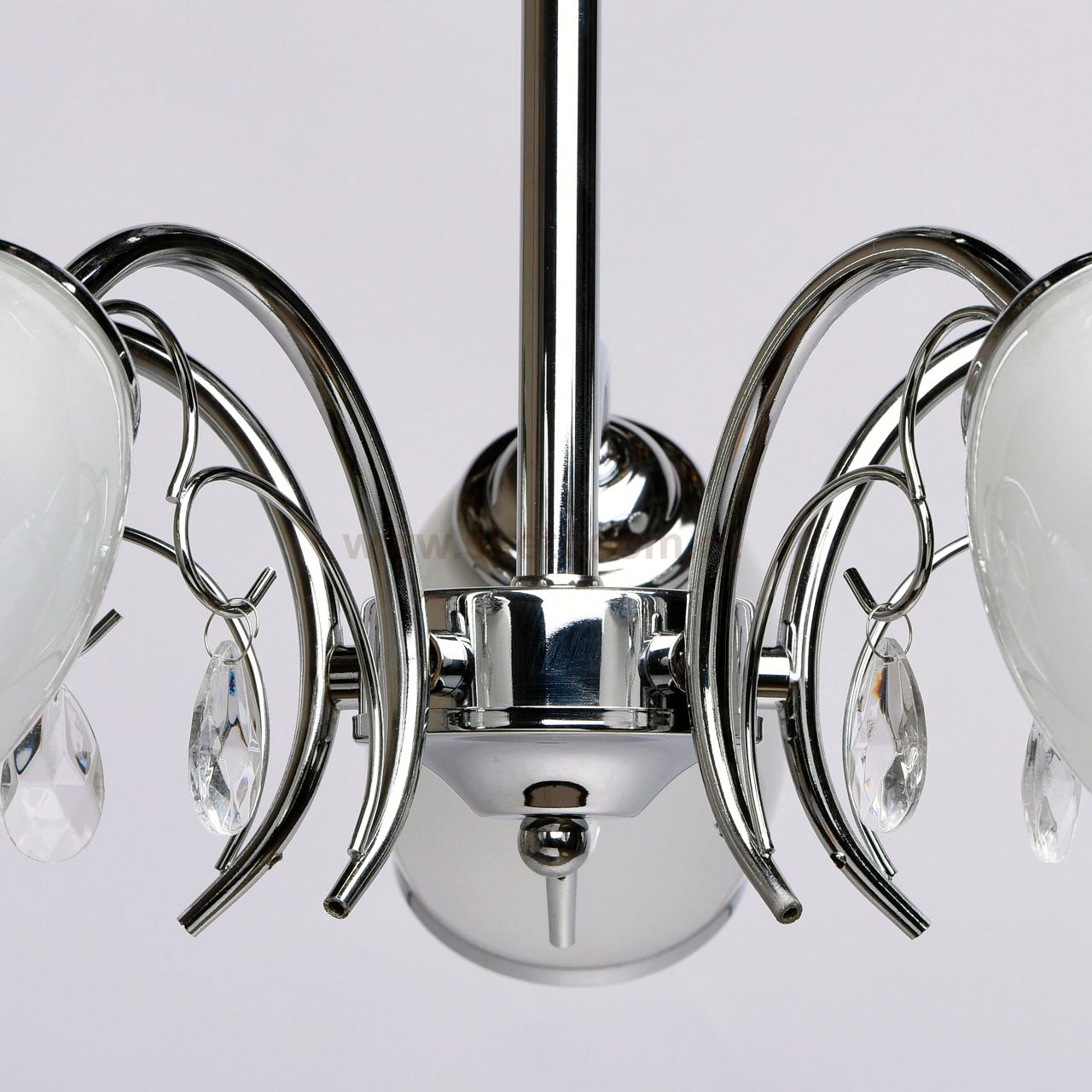 Металлическое основание цвета хрома, плафоны из стекла, декоративные подвески из стекла Материал плафона