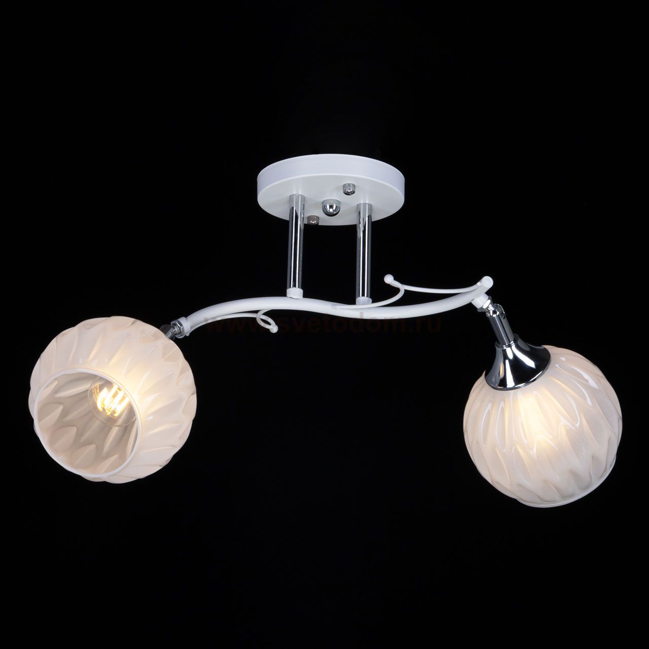 Трендовое сочетание белого и цвета хрома придает потолочной люстре современности.Белые плафоны мягко рассеивают свет. Крепление плафонов на шарнирах позволяет менять направление светового потока.Компактный размер потолочной люстры позволяет сохранить пространство комнаты при стандартном потолке.Заменяемые источники света удобны в эксплуатации. Технология производства