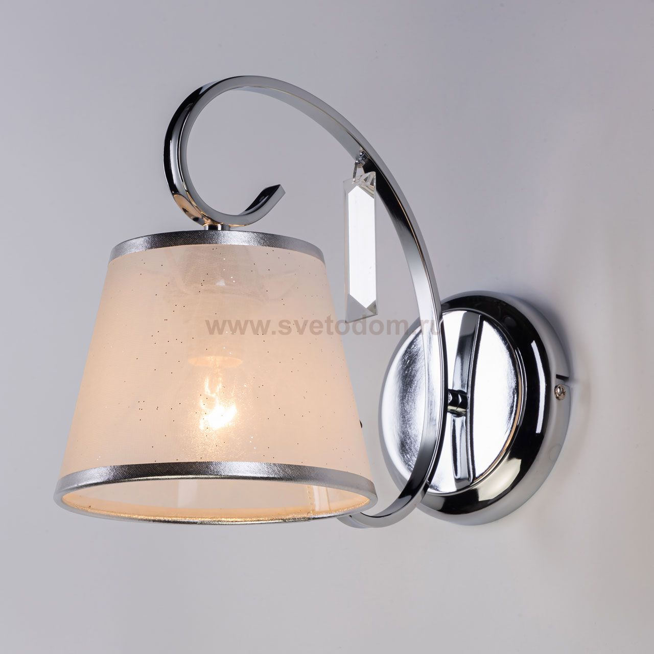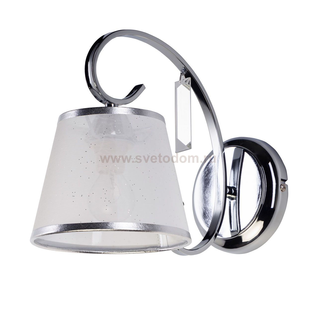 Металлическое основание бра гальванизировано в цвет хрома. Сменяемые источники света закрыты белым текстильным абажуром с термостойким акрилом внутри. Светильник декорирован прозрачным хрусталем вытянутой формы. Комментарий