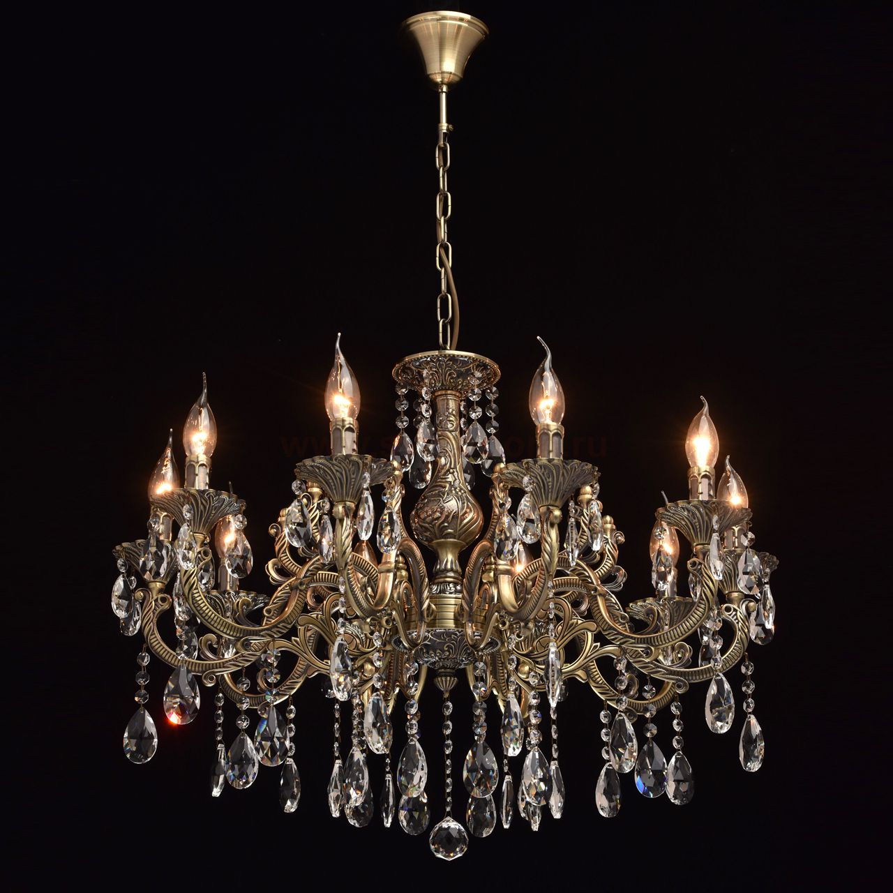 Арматура светильника выполнена из комбинации сплавов металлов и гальванизирована в цвет античной бронзы, с последующим патинированием и лакированием. Основание выполнено из металла по технологии прессования. Рожки и центральная часть выполнены из сплава алюмининия по технологии художественного литья. Декор: подвески из прозрачного хрусталя 4 видов в форме октагонов, миндаля и шара. Комментарий