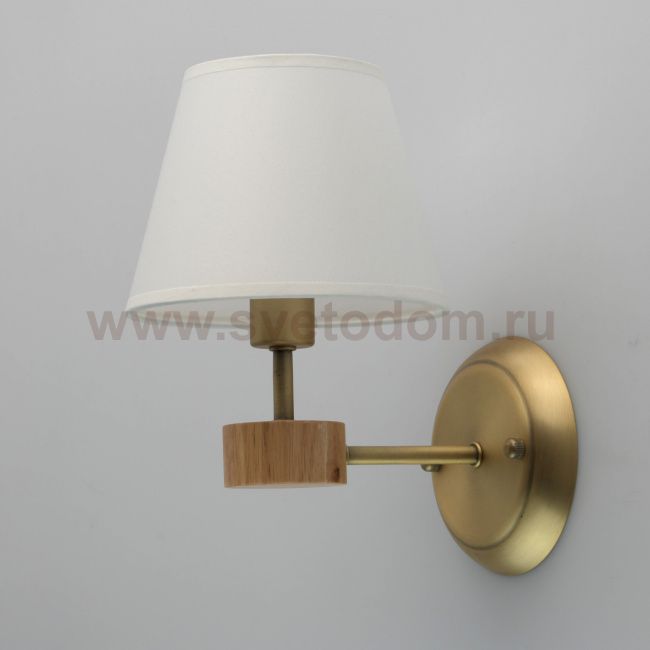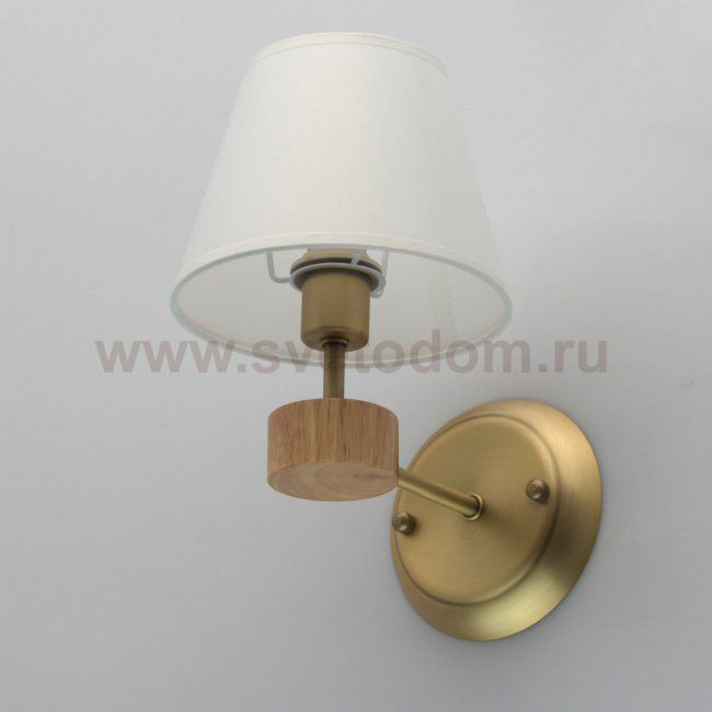 Оригинальное бра сочетает в себе элегантность классических моделей и минималистичность современных источников света. Основание из металла выполнено в благородном цвете сатинового золота и дополнено декоративной вставкой из натурального дерева. Такой нетривиальный дуэт выглядит очень смело и необычно. Стильную композицию завершает легкий тканевый абажур белого оттенка. Благодаря столь интересным сочетаниям, модель будет гармонично смотреться в различных интерьерных решениях: от эко-стиля до ар-деко