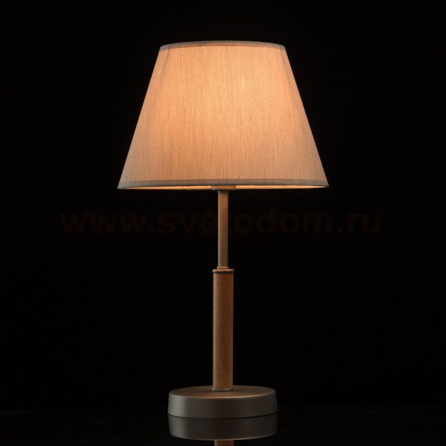 Эксклюзивное сочетание материалов, элегантность и сдержанность привлекают в этой лампе. Металлическое основание цвета сатинового никеля подчеркнуто оригинальной декоративной вставкой из натурального дерева – создается своеобразный контраст, привлекающий внимание. Тканевый абажур серебристого оттенка идеально дополняет композицию. Такой светильник будет гармонично смотреться в интерьерах с различными стилевыми решениями: эко, скандинавский стиль, ар-деко, модерн