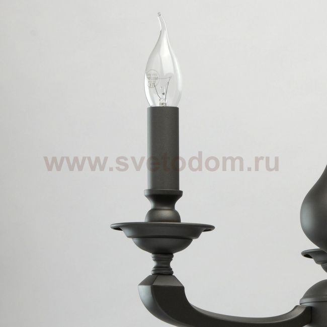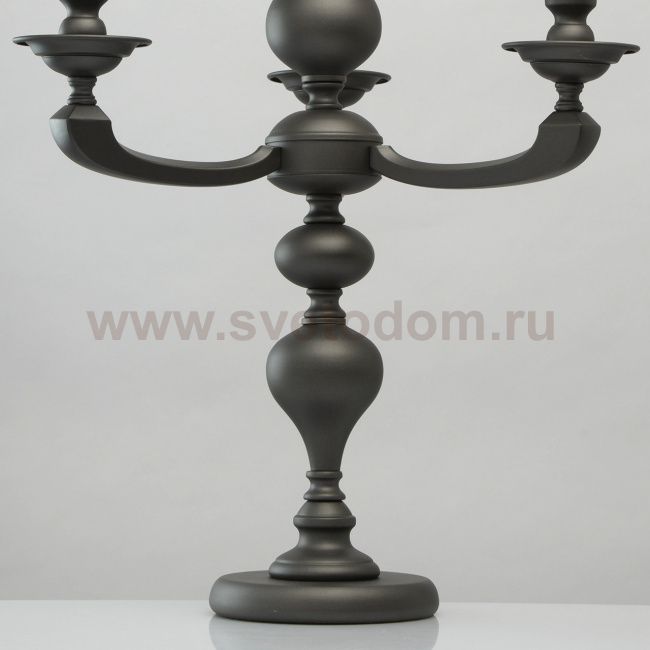 Основание светильника выполнено из комбинации сплавов металлов и окрашено в цвет графита. Корпус, центральный стержень и декоративные розетки изготовлены из металла по технологии токарной обработки. Рожки выполнены из сплава алюминия по технологии художественного литья. Комментарий