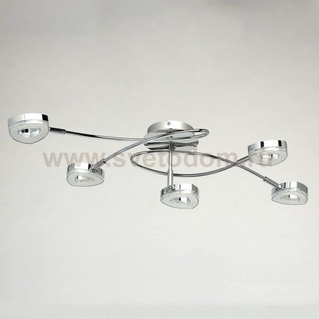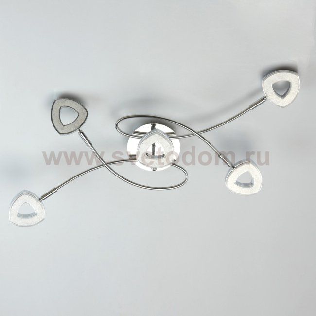 Сочетание гламура и технологичности привлекает в этом необычном светильнике. Металлическое основание выполнено в трендовом хромированном оттенке и отполировано до блеска – благодаря этому свет отражается, а композиция становится многомерной. Оригинальной формы плафоны из акрила и металла выполнены в двух оттенках – хром и белый, а их нестандартная форма добавляет модели легкости и изящности |