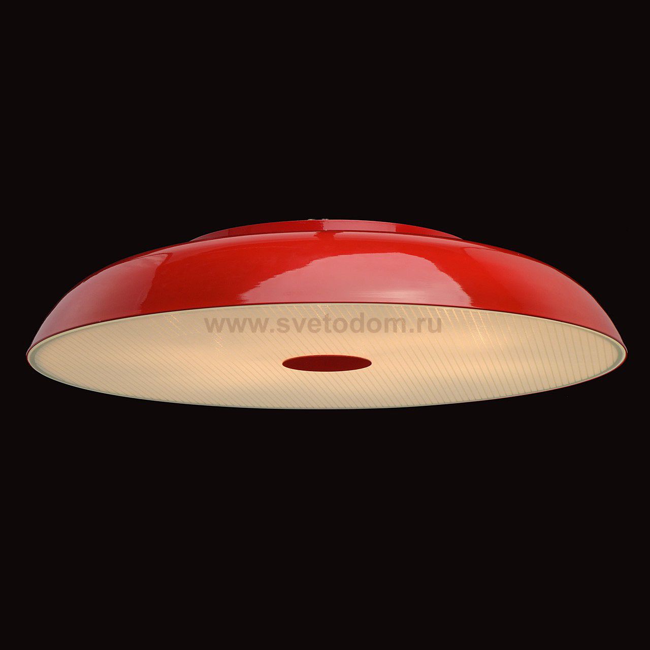 Основание светильника выполнено из металла и окрашено в красный цвет. Источник света закрыт стеклом, матированным по трафарету. Комментарий