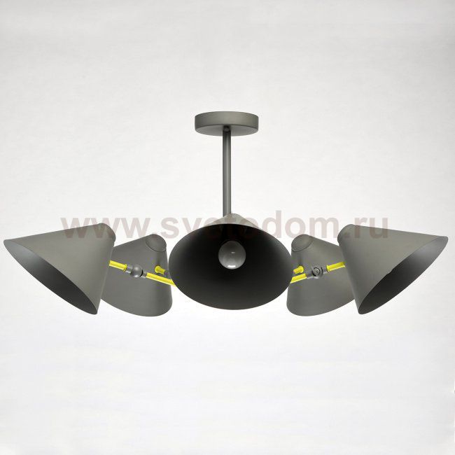 Основание изготовлено из металла и окрашено в серый цвет, рожки окрашены в салатовый цвет. Плафоны изготовлены из металла и окрашены в серый цвет. Комментарий