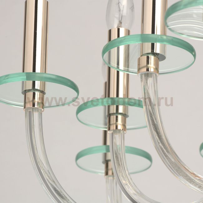 Классические формы, трендовая палитра, современная легкость и минималистичность - в этой люстре эффектно сочетаются, казалось бы, несочетаемые качества. Меатллическое основание золотого оттенка подчеркнуто красивым изгибом прозрачных стеклянных рожков. На их фоне особенно ярко выделяются плоские розетки из стекла нежного мятного оттенка. Свечи-источники света и помпезность композиции отсылают к классическим традициям, однако воздушность и нетривиальный, даже несколько экстравагантный стильный дизайн напоминают, что перед нами современная модель.