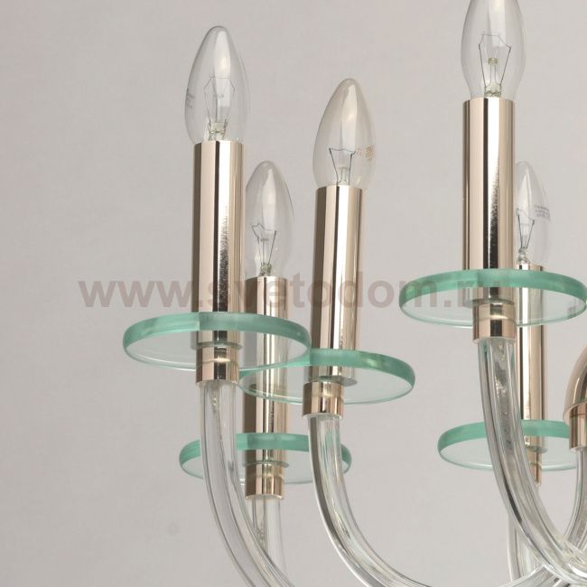 Классические формы, трендовая палитра, современная легкость и минималистичность - в этой люстре эффектно сочетаются, казалось бы, несочетаемые качества. Меатллическое основание золотого оттенка подчеркнуто красивым изгибом прозрачных стеклянных рожков. На их фоне особенно ярко выделяются плоские розетки из стекла нежного мятного оттенка. Свечи-источники света и помпезность композиции отсылают к классическим традициям, однако воздушность и нетривиальный, даже несколько экстравагантный стильный дизайн напоминают, что перед нами современная модель.