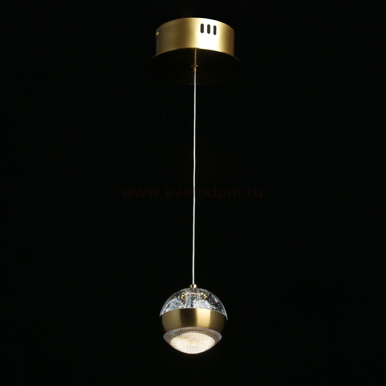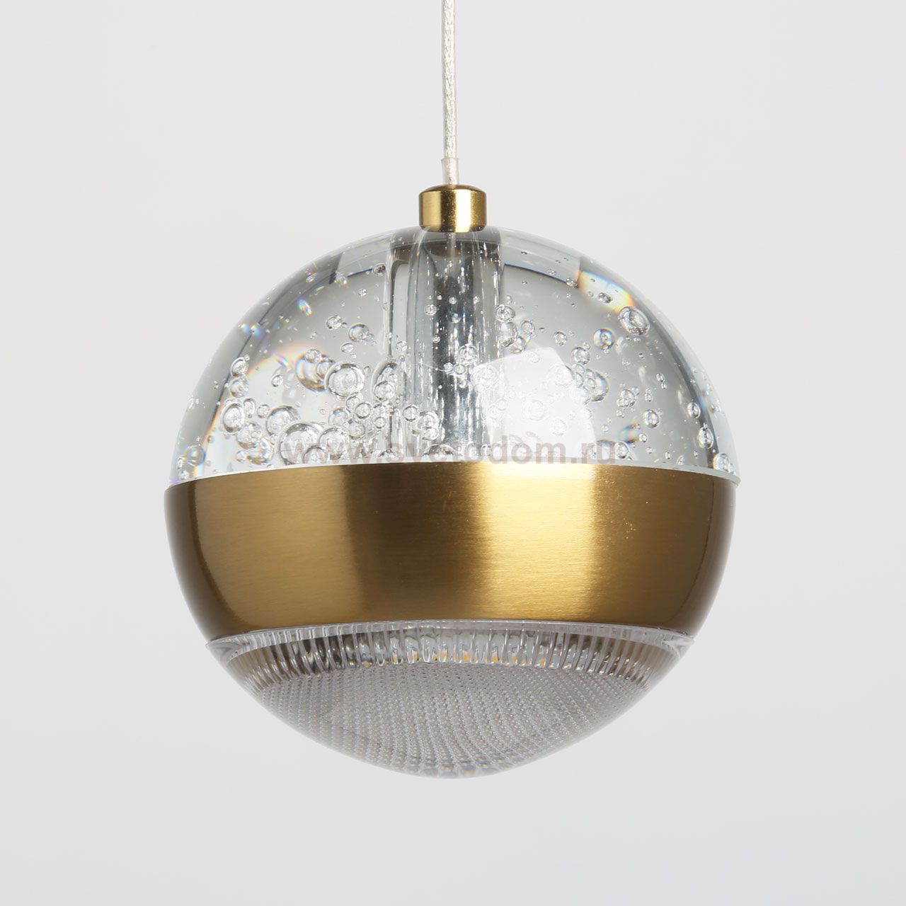 Основание светильника выполнено из комбинации сплавов металлов. Потолочная чаша выполнена из металла и окрашена в цвет латунь. Потолочная чаша закрыта пластиной из сплава алюминия цвета латунь, обработанного по технологии браширования с последующим патинированием.Плафон на подвесе в виде троса: каркас плафона выполнен из сплава алюминия цвета латунь и обработан по технологии браширования с последующим патинированием. В верхней части плафона светодиодный источник света типа SMD chip закрыт стеклом, отлитым в форму и обработанным по технологии пулегозо, при которой в плафоне образуются пузырьки. В нижней части плафона второй светодиодный источник света типа SMD chip закрыт прозрачным акрилом с фактурой сот. Комментарий