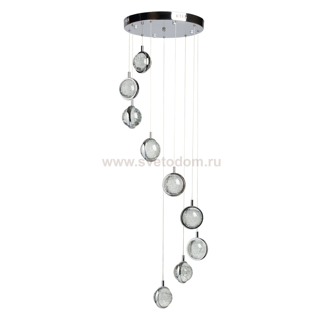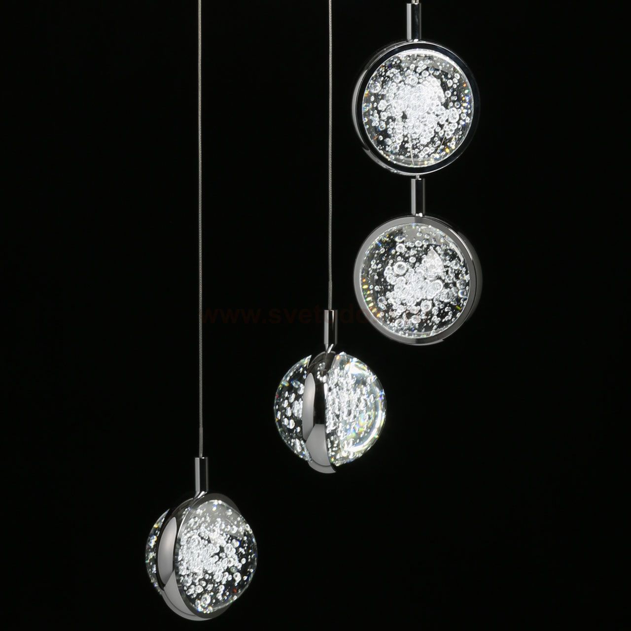 Основание светильника выполнено из сплава алюминия с цинком, обработано по технологии брашинга и гальванизировано в цвет хрома. Светодиодный источник света закрыт сферой из стекла с включениями пузырьков. Комментарий