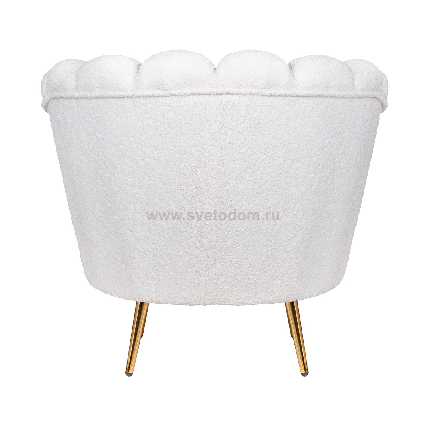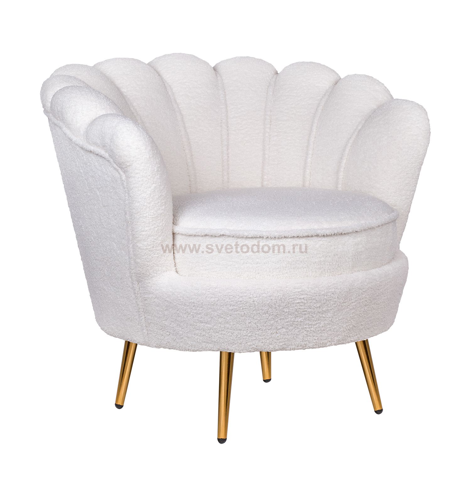 Кресло белое букле Pearl boucle на основе каркаса из натурального дерева, с обивкой букле искусственный мех, барашек, декорированной продольными стежками на внутренней стороне спинки. Модель выполнена букле белого цвете, по форме напоминает створку раковины, огибающей жемчужину – круглую подушку для сидения. Короткие металлические ножки с блестящей золотистой поверхностью расходятся в виде лучей под небольшим наклоном к основанию. Мебель роскошно выглядит и подходит для оформления элитных интерьеров.