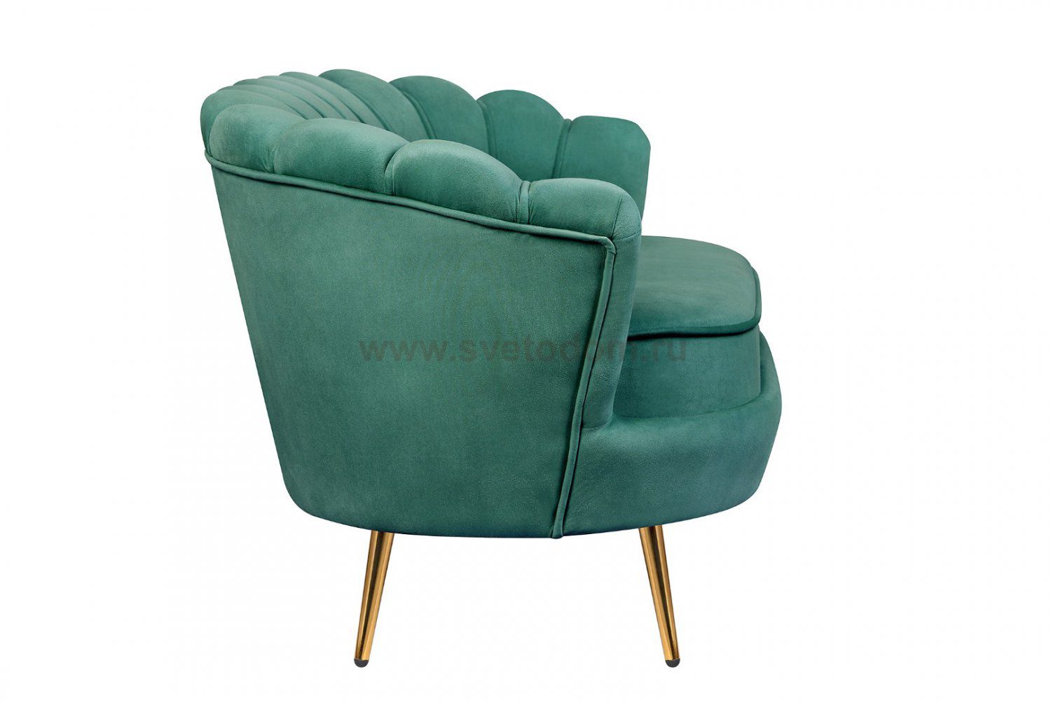 Зеленый диван ракушка с обивкой из велюра Pearl double green на основе каркаса из натурального дерева, с обивкой, декорированной продольными стежками на внутренней стороне спинки. Модель выполнена в зеленом цвете, по форме напоминает створку раковины, огибающей жемчужину – круглую подушку для сидения. Короткие металлические ножки с блестящей золотистой поверхностью расходятся в виде лучей под небольшим наклоном к основанию. Мебель роскошно выглядит и подходит для оформления элитных интерьеров.