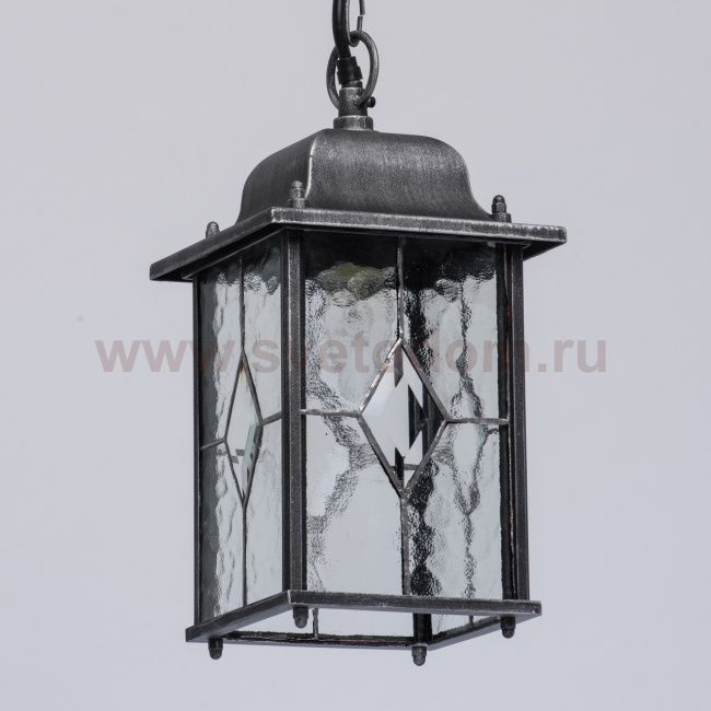 Основание из литого алюминия черного цвета, декорированное серебряной патиной, плафоны - витражное стекло Материал плафона