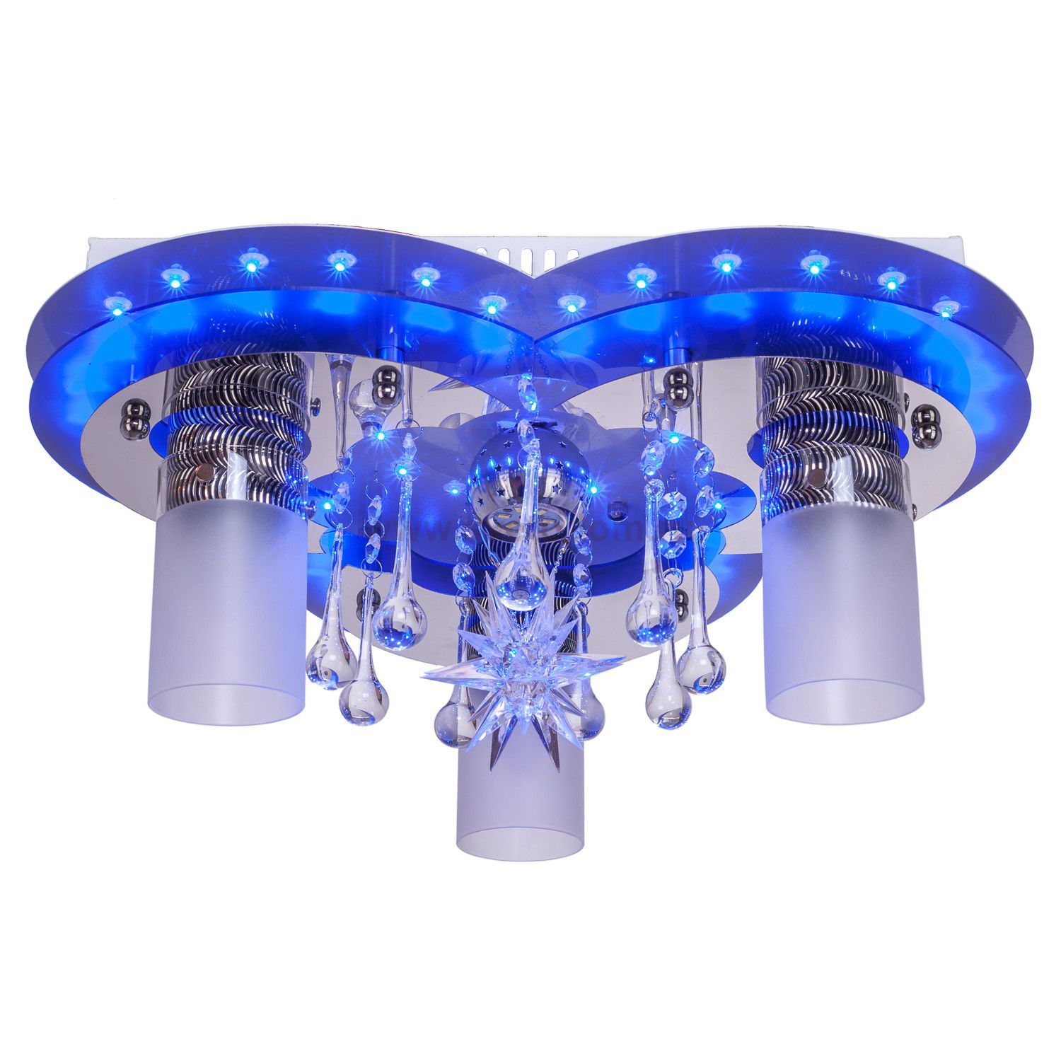 Потолочный светильник 8255/3+1WT CR RC RBPLED с пультом дистанционного управления от бренда ЭкономСвет. Каркас выполнен из материалов металл и пластик; цвета: белый, хром и синий. Плафоны (светорассеиватели) выполнены из материала стекло, цвет белый. Цоколь E27 рассчитан на лампы максимальной мощности до 40 Вт, а максимальная площадь освещения составит до 7 м?. Светодиодная подсветка позволит создать в интерьере разнообразное световое настроение.
