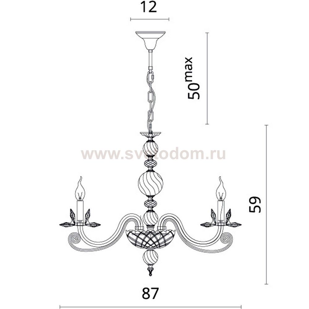 Максимальная потребляемая мощность лампы, которую можно использовать в люстре.