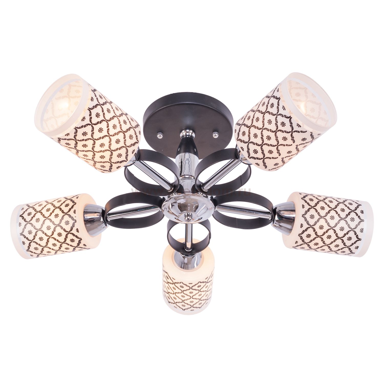 Потолочный светильник 90250/5BK+CR WT от бренда ЭкономСвет. Каркас выполнен из материала металл, цвет хром, черный. Плафоны (светорассеиватели) выполнены из материала стекло, цвет белый. Цоколь E27 рассчитан на лампы максимальной мощности до 60 Вт, а максимальная площадь освещения составит до 11 м?.