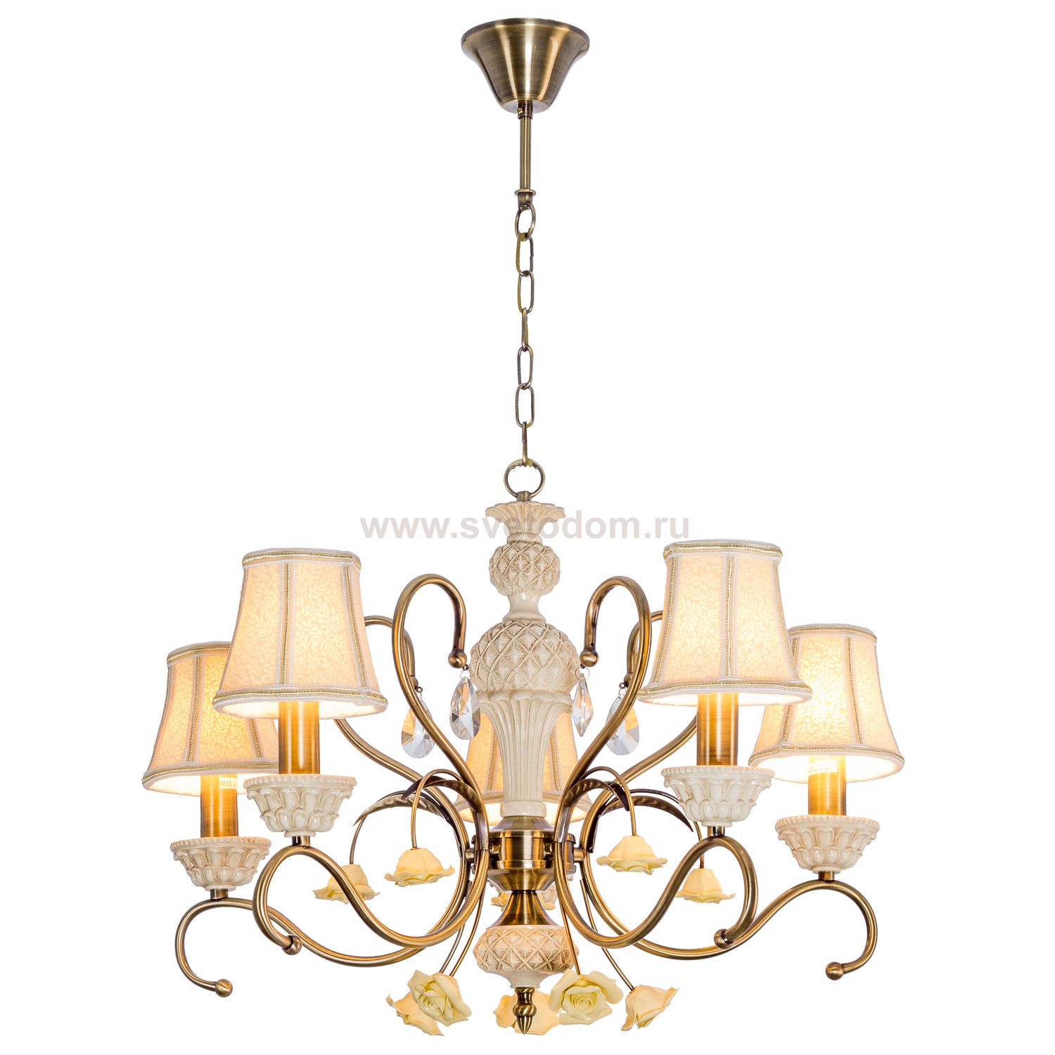 Люстра классическая 96412A/5AB PAINTING от бренда ЭкономСвет. Каркас выполнен из материала металл, цвет античная бронза. Плафоны (светорассеиватели) выполнены из материала текстиль, цвет белый. Цоколь E14 рассчитан на лампы максимальной мощности до 40 Вт, а максимальная площадь освещения составит до 11 м?.