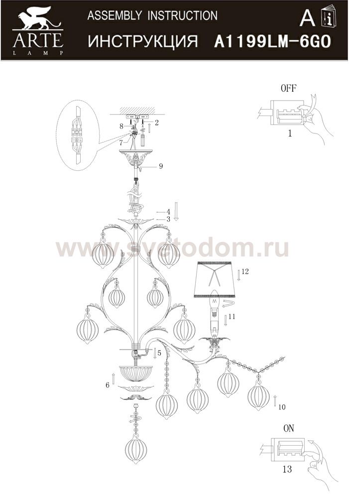 Компания «Светодом» предлагает широкий ассортимент люстр от известных производителей. Представленные в нашем каталоге товары выполнены из современных материалов и обладают отличным качеством. Благодаря широкому ассортименту Вы сможете найти у нас люстру под любой интерьер. Мы предлагаем как классические варианты, так и современные модели, отличающиеся лаконичностью и простотой форм. Стильная люстра Arte lamp A1199LM-6GO станет украшением любого дома. Эта модель от известного производителя не оставит равнодушным ценителей красивых и оригинальных предметов интерьера. Люстра Arte lamp A1199LM-6GO обеспечит равномерное распределение света по всей комнате. При выборе обратите внимание на характеристики, позволяющие приобрести наиболее подходящую модель. Купить понравившуюся люстру по доступной цене Вы можете в интернет-магазине «Светодом».