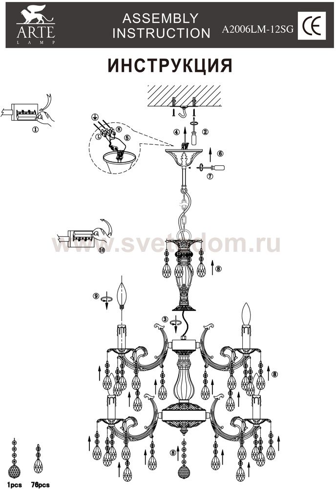 Композиционная грация в форме изысканного канделябра наполнит роскошью Ваш дом! Царица классики – литая люстра Arte lamp A2006LM-12SG. Каждый изгиб создан рукой мастера-эстета, знающего толк в безупречном исполнении. Люстра Arte lamp A2006LM-12SG величественна в своём золотом сиянии и насыщенных каплях света, стремящихся окружить яркостью каждую клетку домашнего очага. Зелёный, бежевый, кремовый, цвета натурального дерева различных оттенков и другие желали бы заполучить в свой интерьер эту роскошь. Украсьте пространство резной мебелью, зеркалами в лепных рамах, сложной драпировкой, скульптурами, часами и другими элементами декора. И благородству в Вашем доме не будет равных!