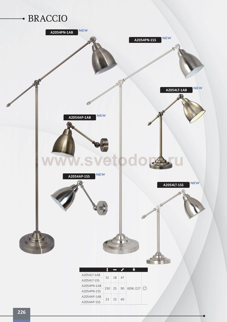 Торшер Arte lamp A2054PN-1SS BRACCIO