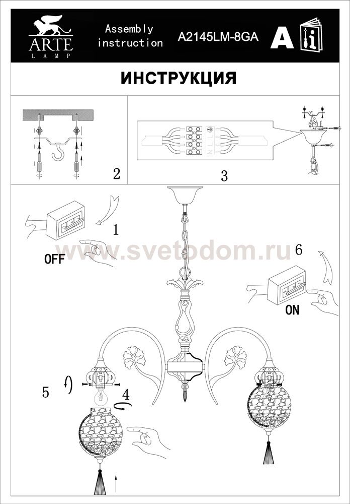 Компания «Светодом» предлагает широкий ассортимент люстр от известных производителей. Представленные в нашем каталоге товары выполнены из современных материалов и обладают отличным качеством. Благодаря широкому ассортименту Вы сможете найти у нас люстру под любой интерьер. Мы предлагаем как классические варианты, так и современные модели, отличающиеся лаконичностью и простотой форм. Стильная люстра Arte lamp A2145LM-8GA станет украшением любого дома. Эта модель от известного производителя не оставит равнодушным ценителей красивых и оригинальных предметов интерьера. Люстра Arte lamp A2145LM-8GA обеспечит равномерное распределение света по всей комнате. При выборе обратите внимание на характеристики, позволяющие приобрести наиболее подходящую модель. Купить понравившуюся люстру по доступной цене Вы можете в интернет-магазине «Светодом».