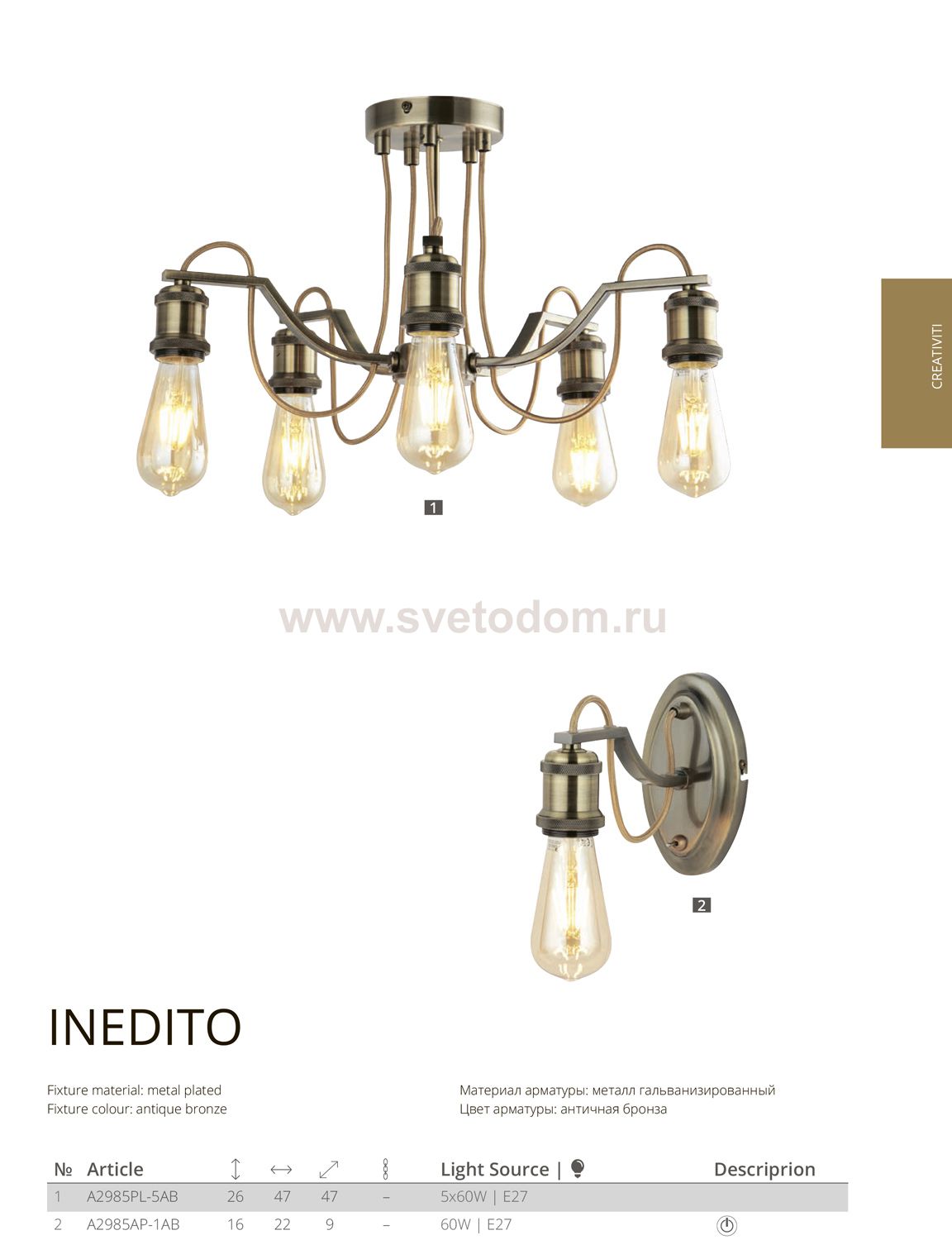 25 Отзывы Светильник настенный Arte lamp A2985AP-1AB IneditoПока нет отзывов об этом товаре, напишите и он обязательно появится после модерации! Оставить свой отзывПохожие товары Другие товары магазина Фото