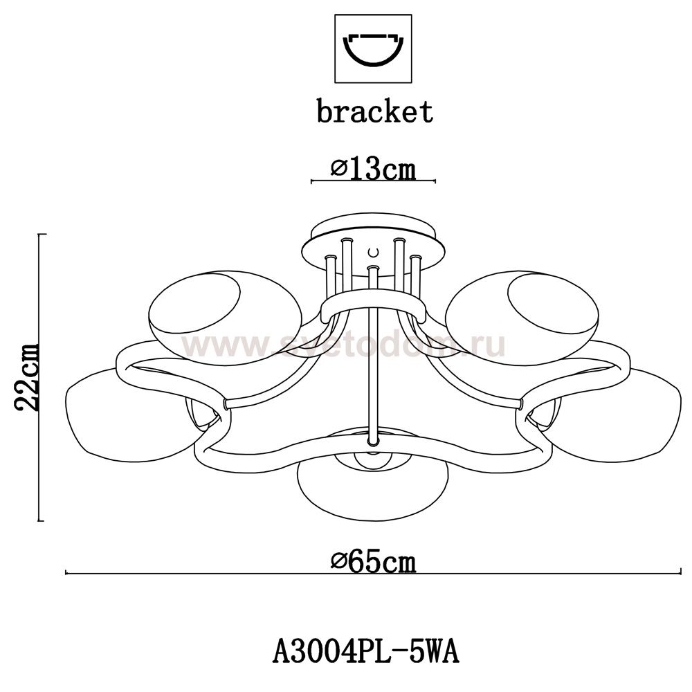Стильный потолочный светильник Arte lamp A3004PL-5WA станет украшением современного интерьера, внесет в него оригинальность, изысканность и шарм! Эффектное сочетание необычной формы и матового белого оттенка формируют неповторимый образ, который всегда будет привлекать восхищенные взгляды Ваших гостей. Пять плафонов создают яркое и приятное для зрения освещение на площади до 14 кв.м., поэтому наиболее функционально использовать светильник в средней по размерам комнате с невысоким потолком, например, в гостиной, прихожей или спальне. Этот источник света идеально впишется в любую цветовую гамму помещения, т.к. белый цвет одинаково подходит ко всем оттенкам спектра.