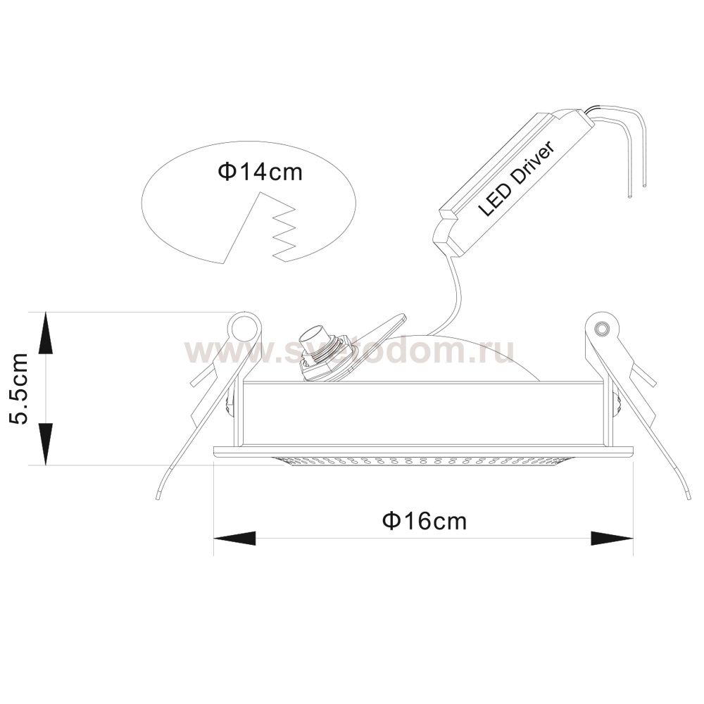 Данный размер указывает какое отверстие необходимо сделать для правильного монтажа. Зачастую светильники выбирают после ремонта и сделанных монтажных отверстий, тогда подбор осуществляется строго в размер +/- 2-5мм.