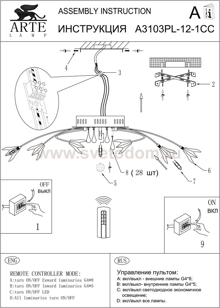 remote control - пульт ДУ, many step switch - мульти-включение Энергоэффективность