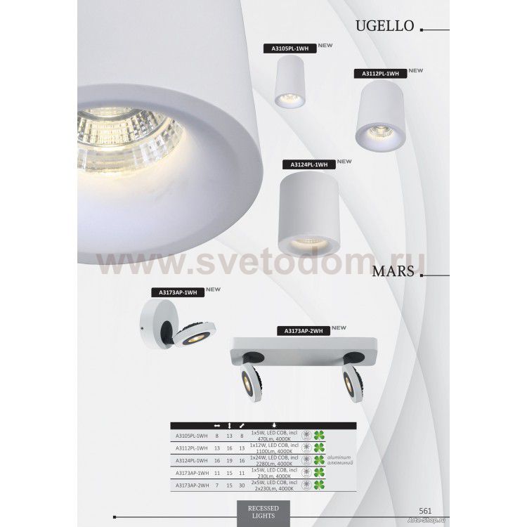 Светильники-споты – это оригинальные изделия с современным дизайном. Они позволяют не ограничивать свою фантазию при выборе освещения для интерьера. Такие модели обеспечивают достаточно качественный свет. Благодаря компактным размерам Вы можете использовать несколько спотов для одного помещения. Интернет-магазин «Светодом» предлагает необычный светильник-спот ARTE Lamp A3173AP-1WH по привлекательной цене. Эта модель станет отличным дополнением к люстре, выполненной в том же стиле. Перед оформлением заказа изучите характеристики изделия. Купить светильник-спот ARTE Lamp A3173AP-1WH в нашем онлайн-магазине Вы можете либо с помощью формы на сайте, либо по указанным выше телефонам. Обратите внимание, что у нас склады не только в Москве и Екатеринбурге, но и других городах России.
